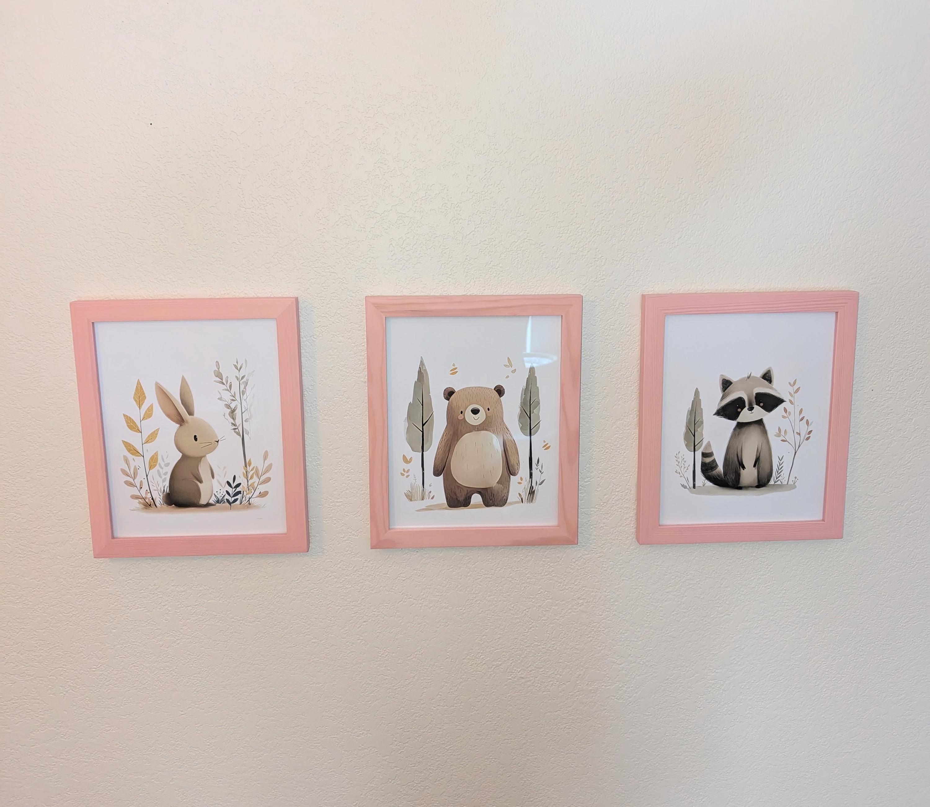 I am in love with these art prints! They look so pretty in the nursery my husband and I are creating. Found some light pink frames that are perfect for them, too.