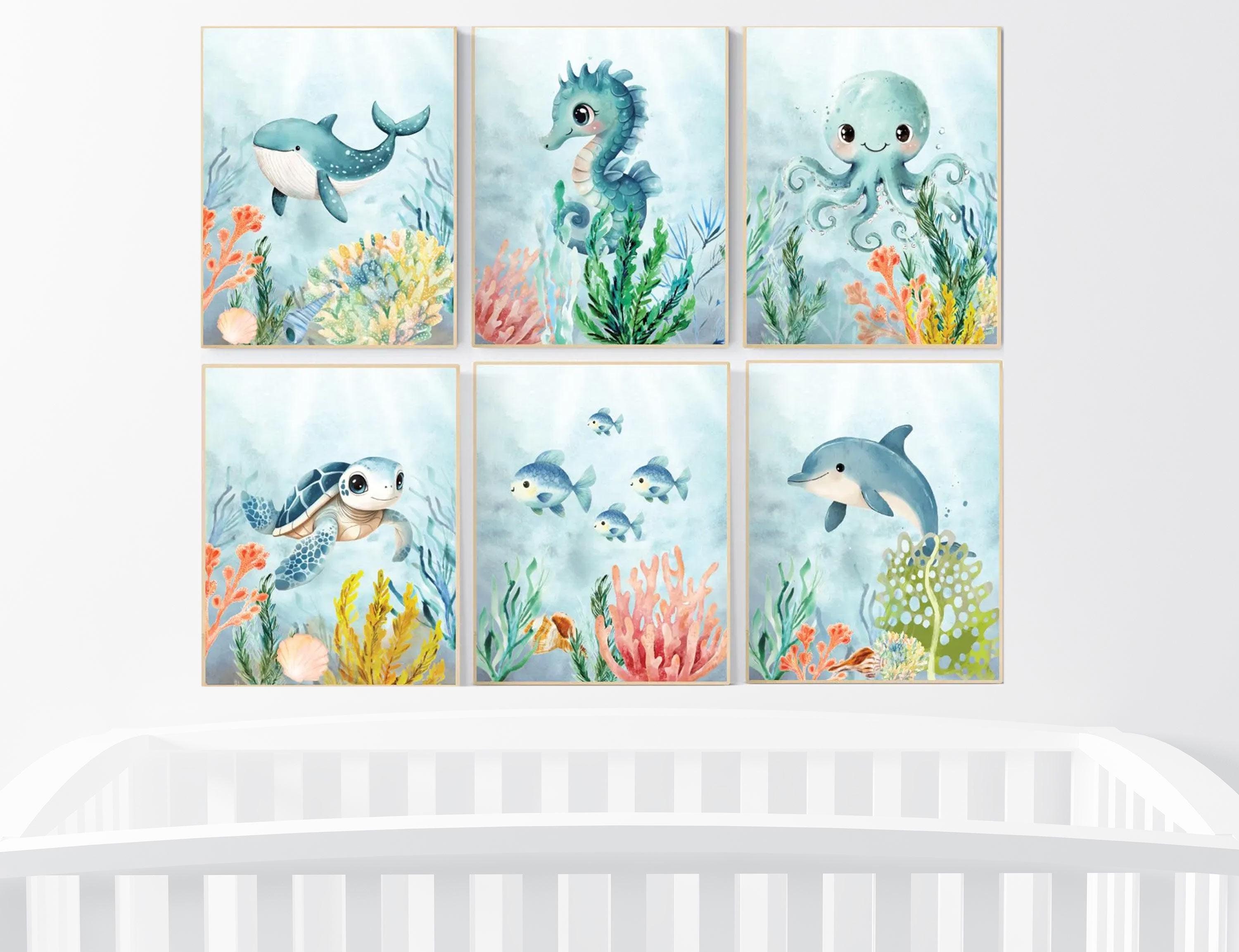 Ocean Animal Prints, Under the Sea Nursery Prints, Sea Animal Wall Art, Playroom Decor, gender neutral nursery, Boy Nursery Prints Set, nursery prints sea, toddler room