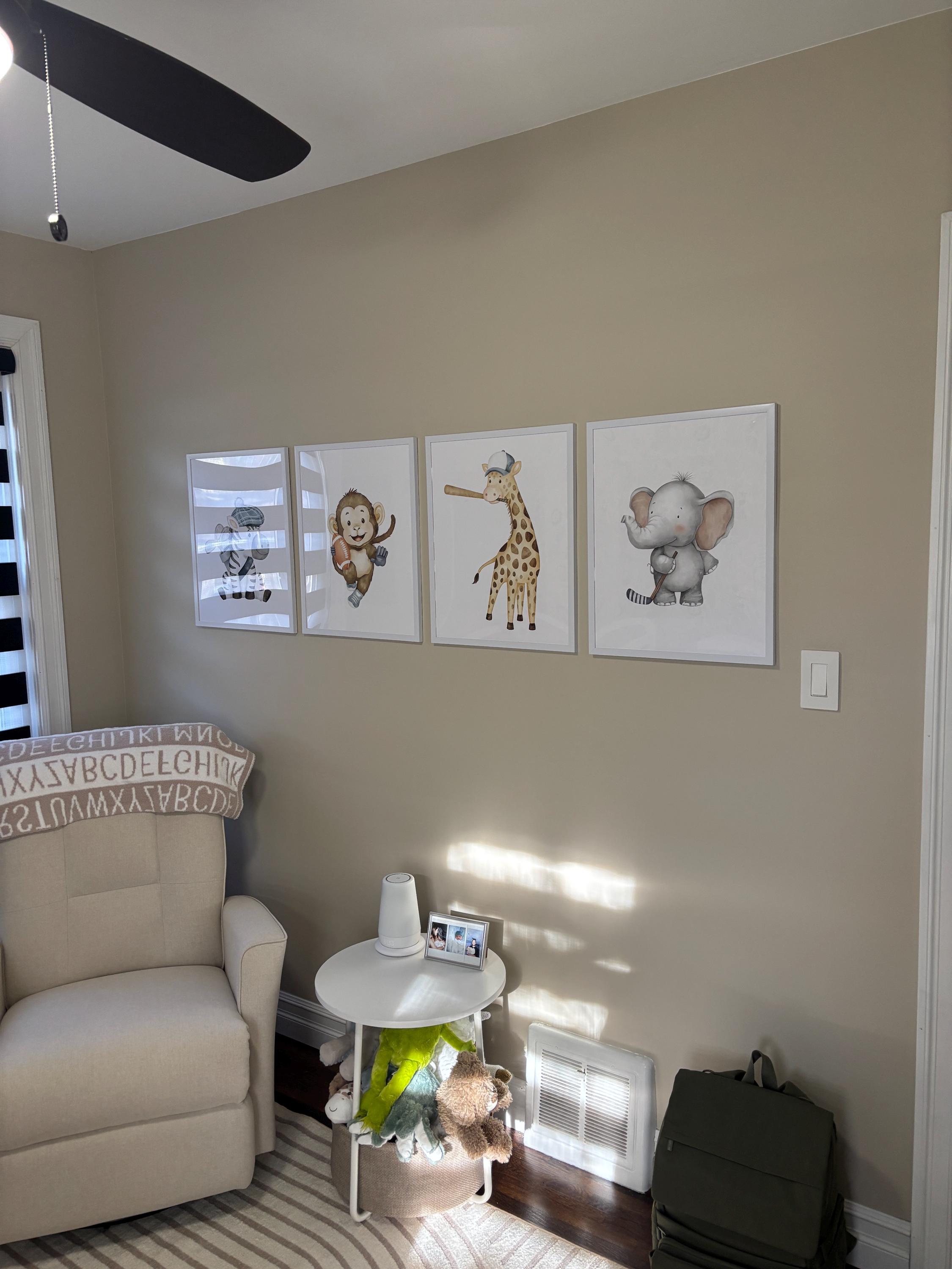 - We can customize any nursery wall art or nursery print to match your nursery decor. Just send us the details of your baby's or kid's room, and we'll create matching designs and colors.