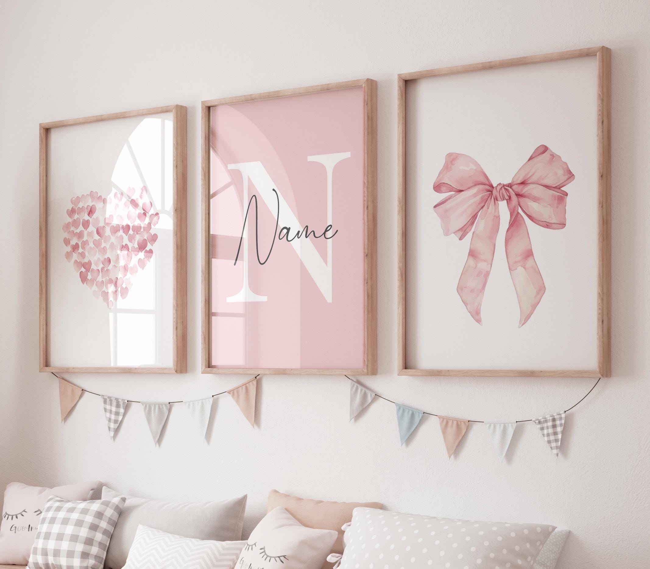 Bow print wall art, Bow nursery print, pink Bow nursery wall art, bow nursery art, bow nursery decor, bow print wall art, name print