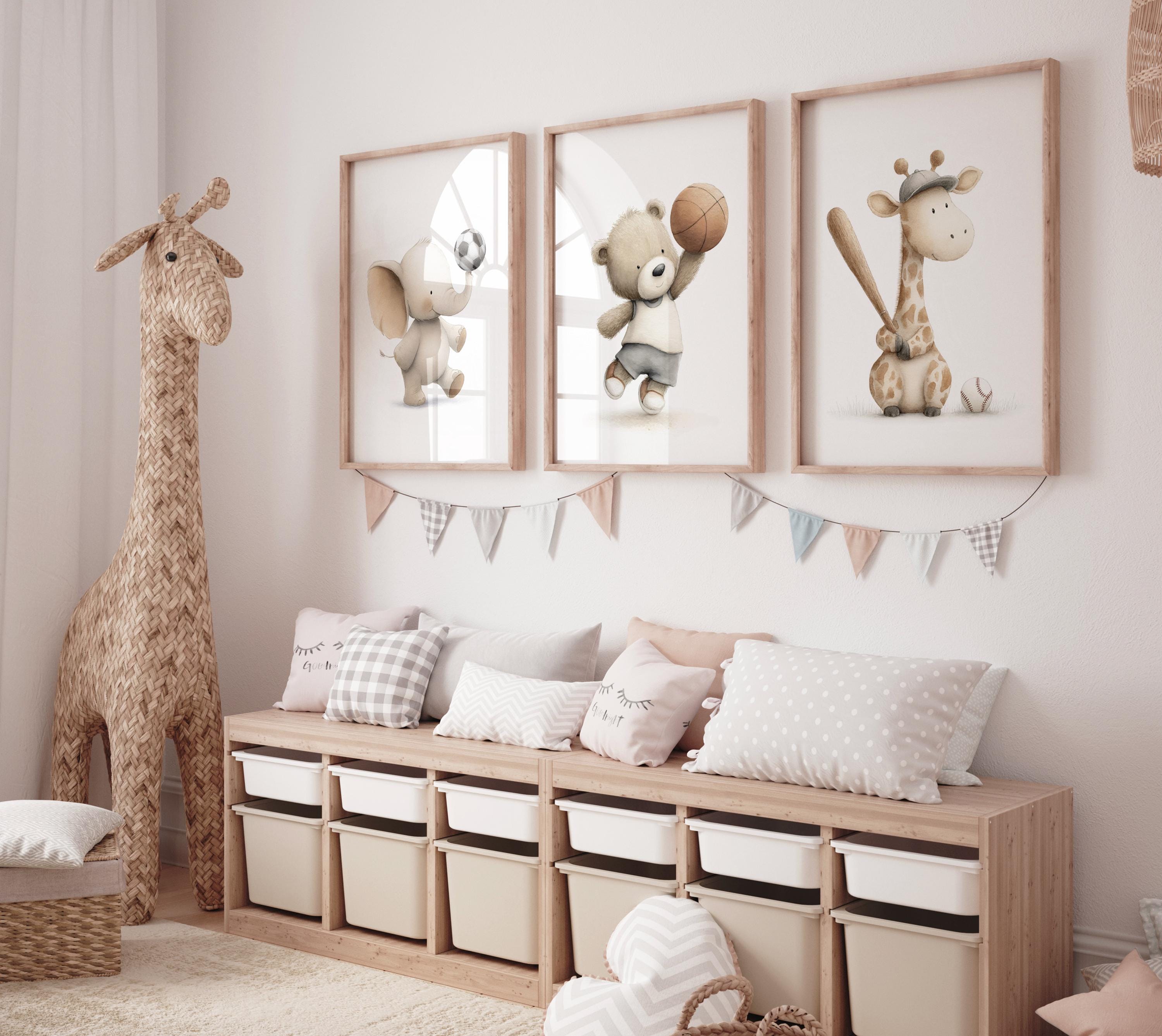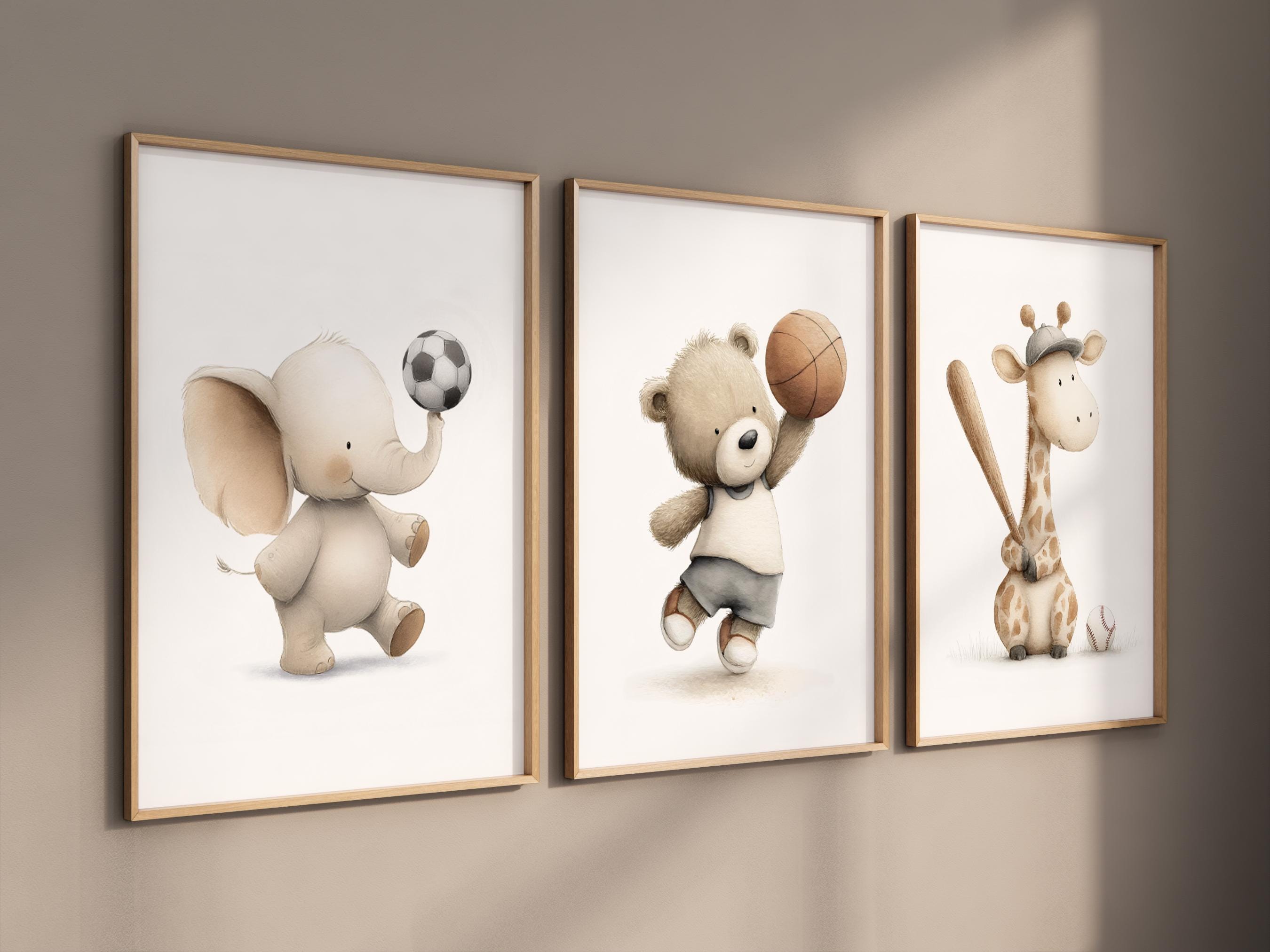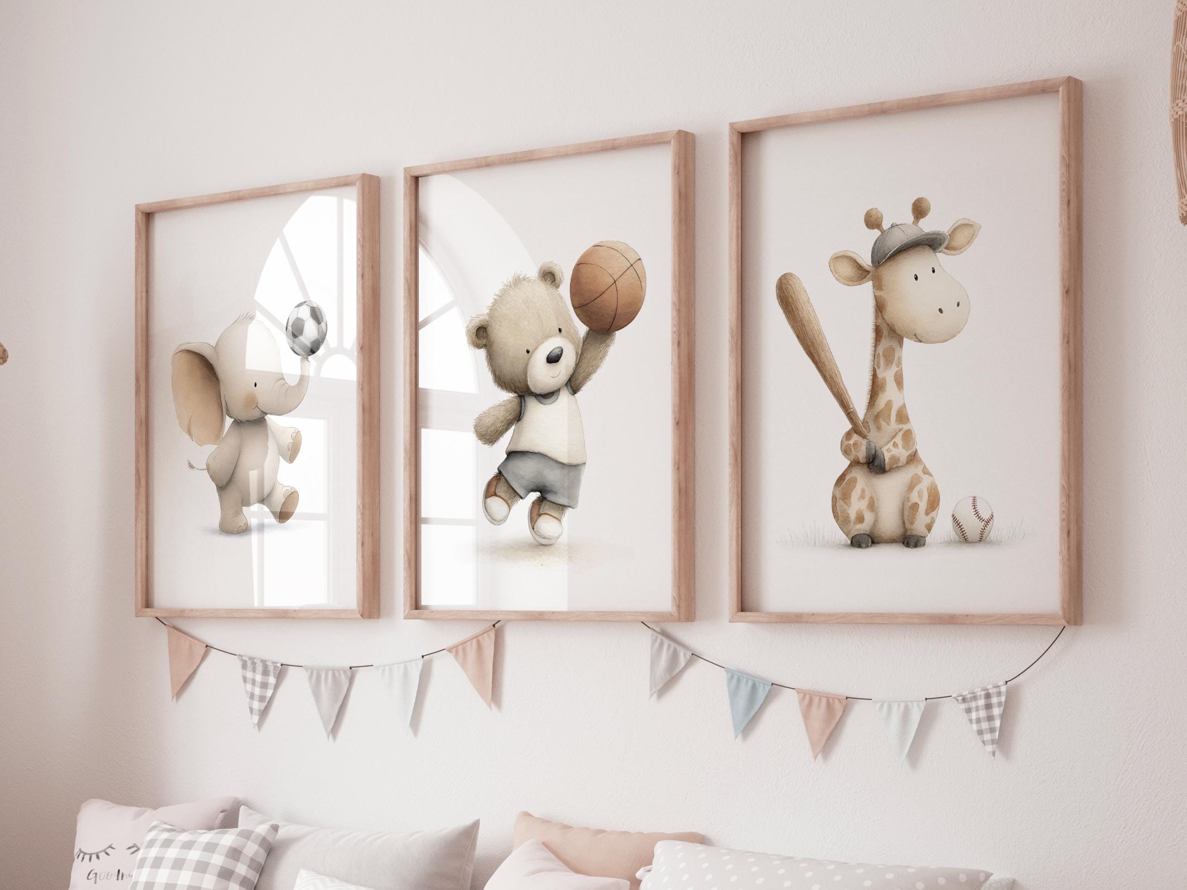Sports nursery decor, Baby Animals Sport, Baby boy sports nursery, Safari nursery, baseball, soccer, basketball nursery, animal sports