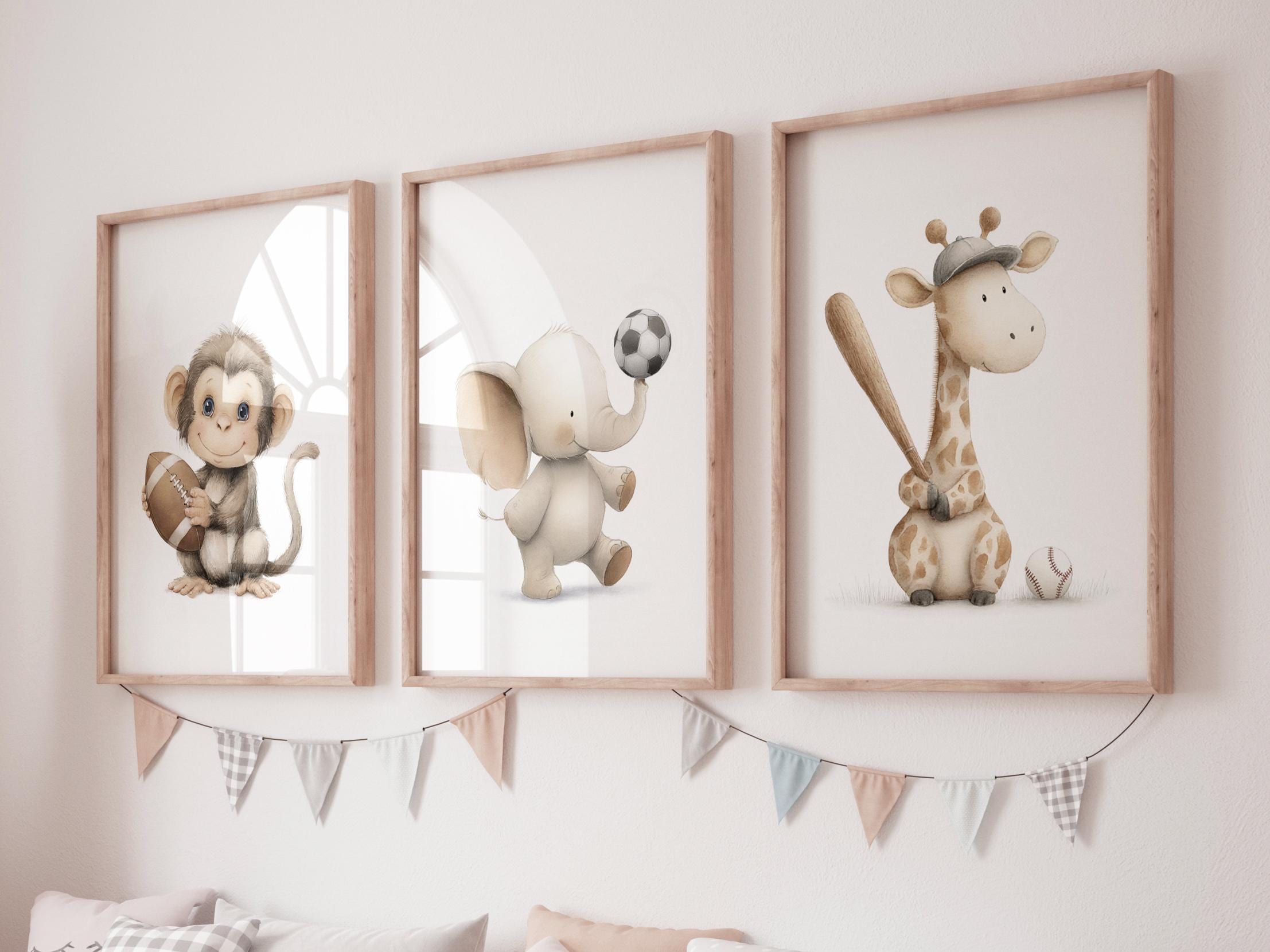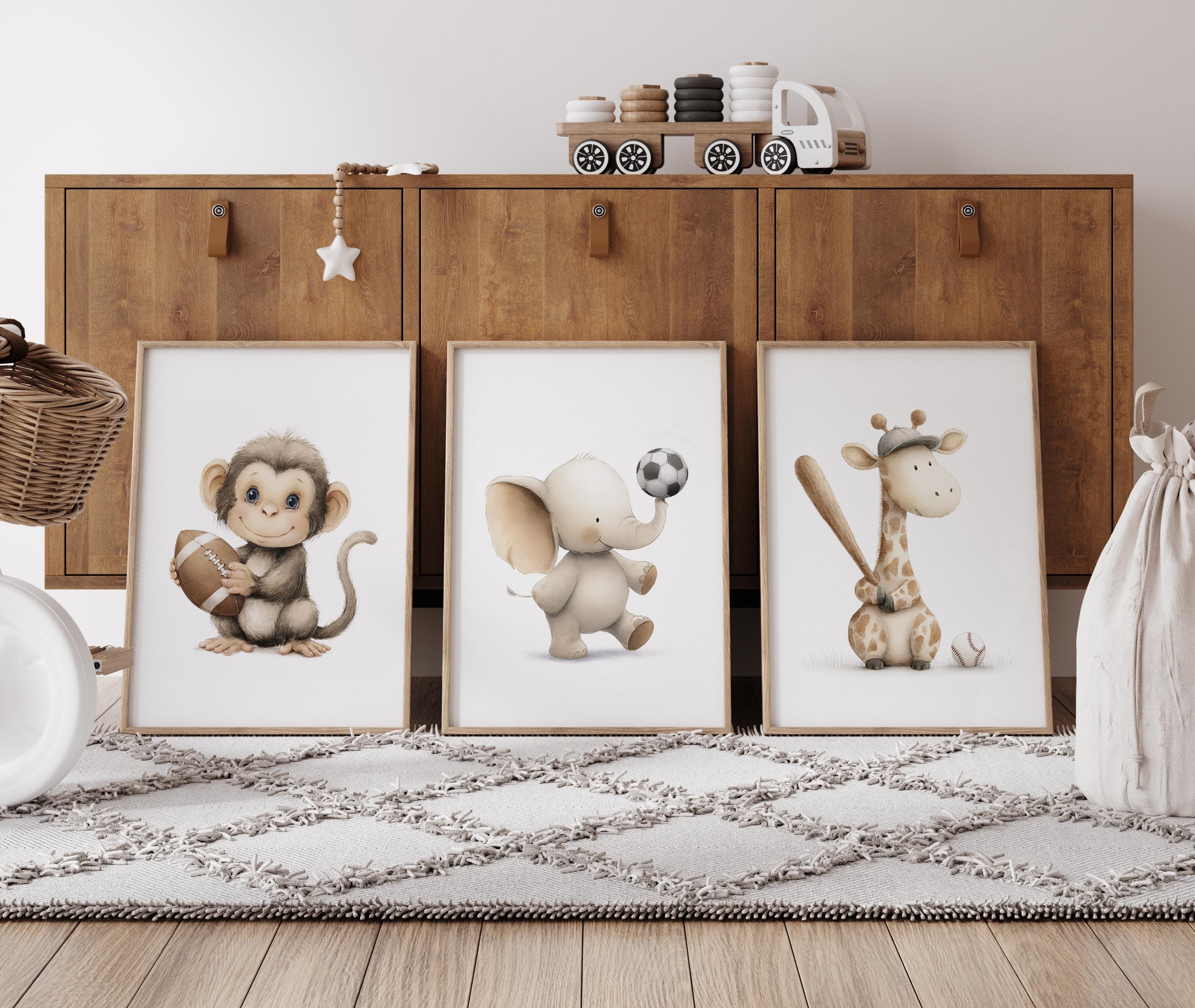 Sports nursery decor, Baby Animals Sport, Baby boy sports nursery, Safari nursery, football, soccer, baseball, nursery, animal sports