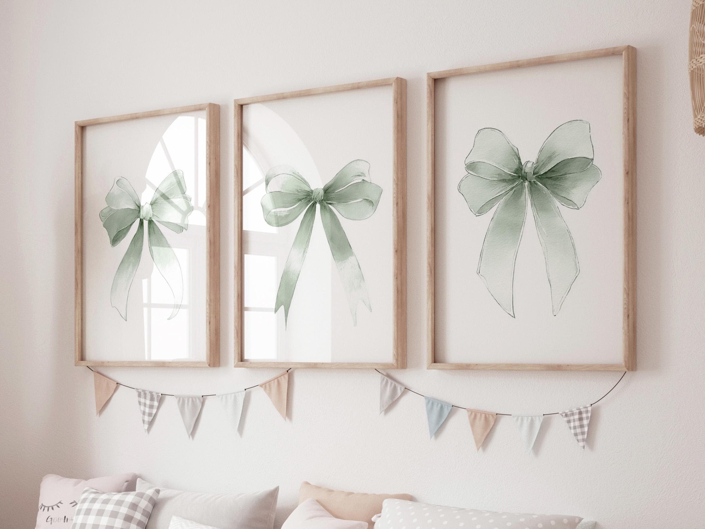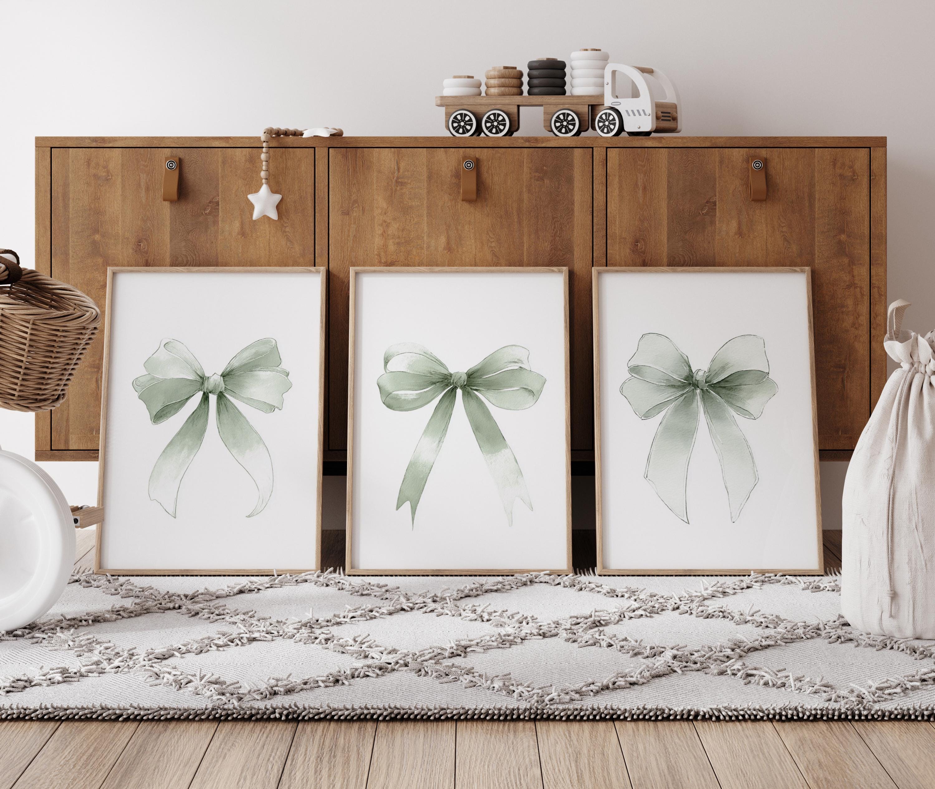 Bow print wall art, Bow nursery print, sage green nursery wall art, bow nursery art, bow nursery decor, bow print wall art green
