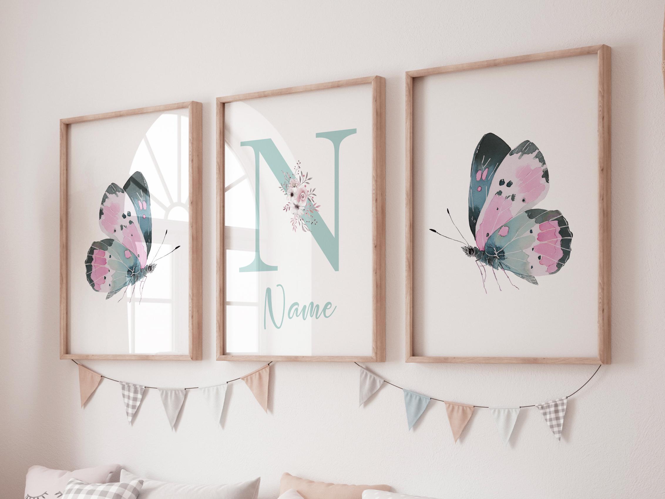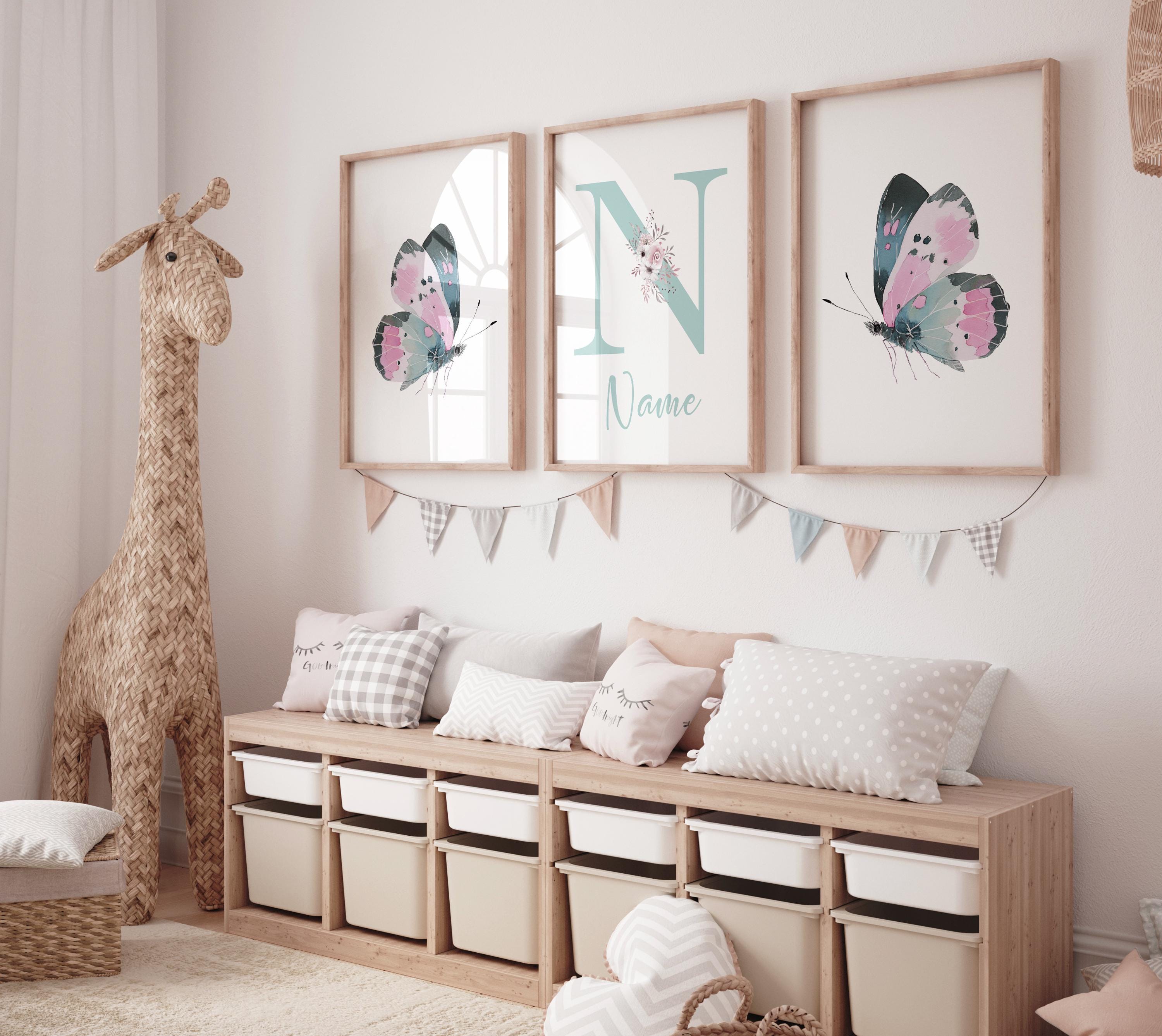 Nursery decor girl butterfly, pink and teal nursery, pink teal nursery, girl room prints, nursery wall decor, butterfly wall art pink