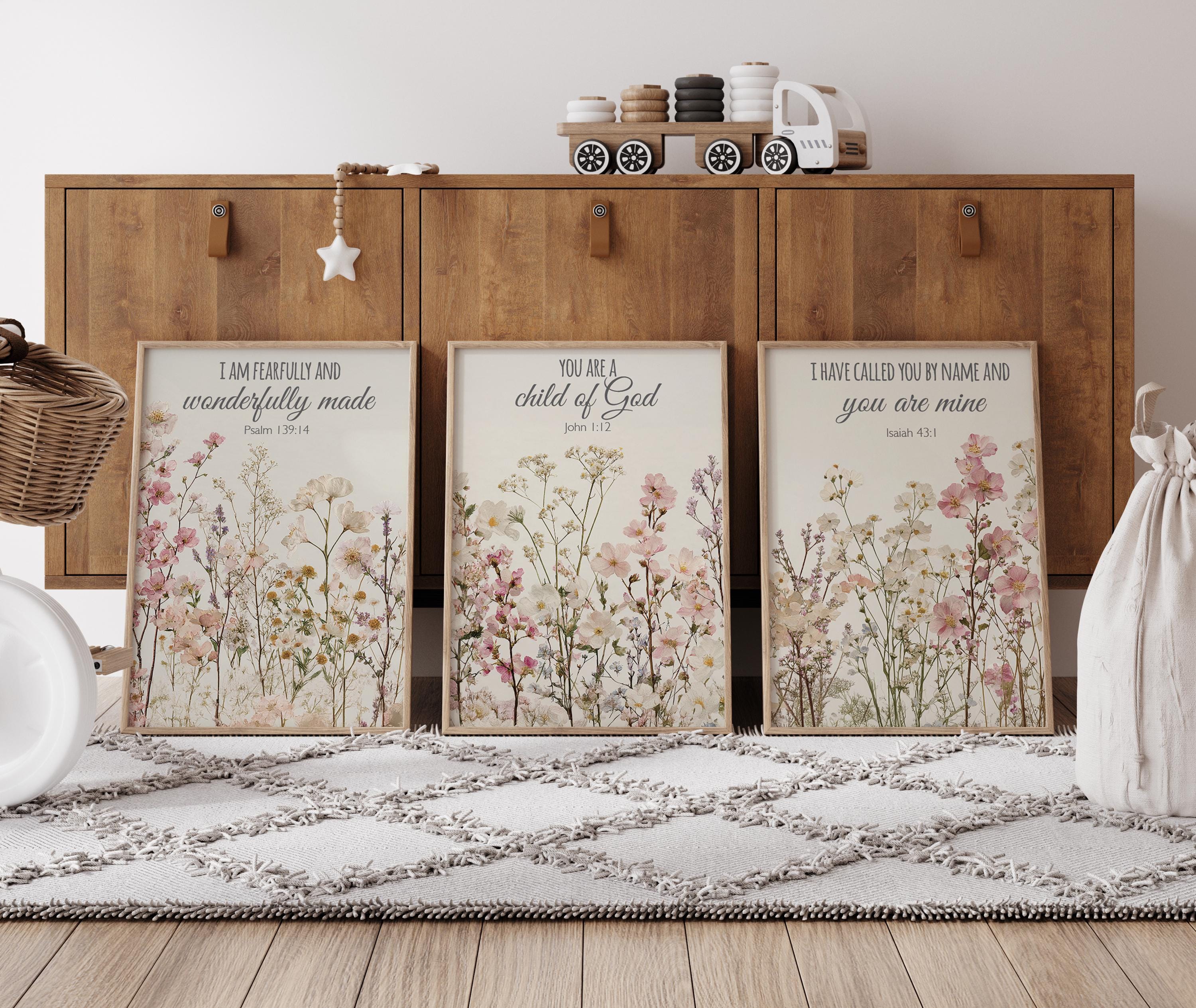 Boho Nursery wall art, Wildflower Nursery Decor, Floral Nursery, Girl Nursery Decor, vintage flower nursery, bible verse, christian wall art