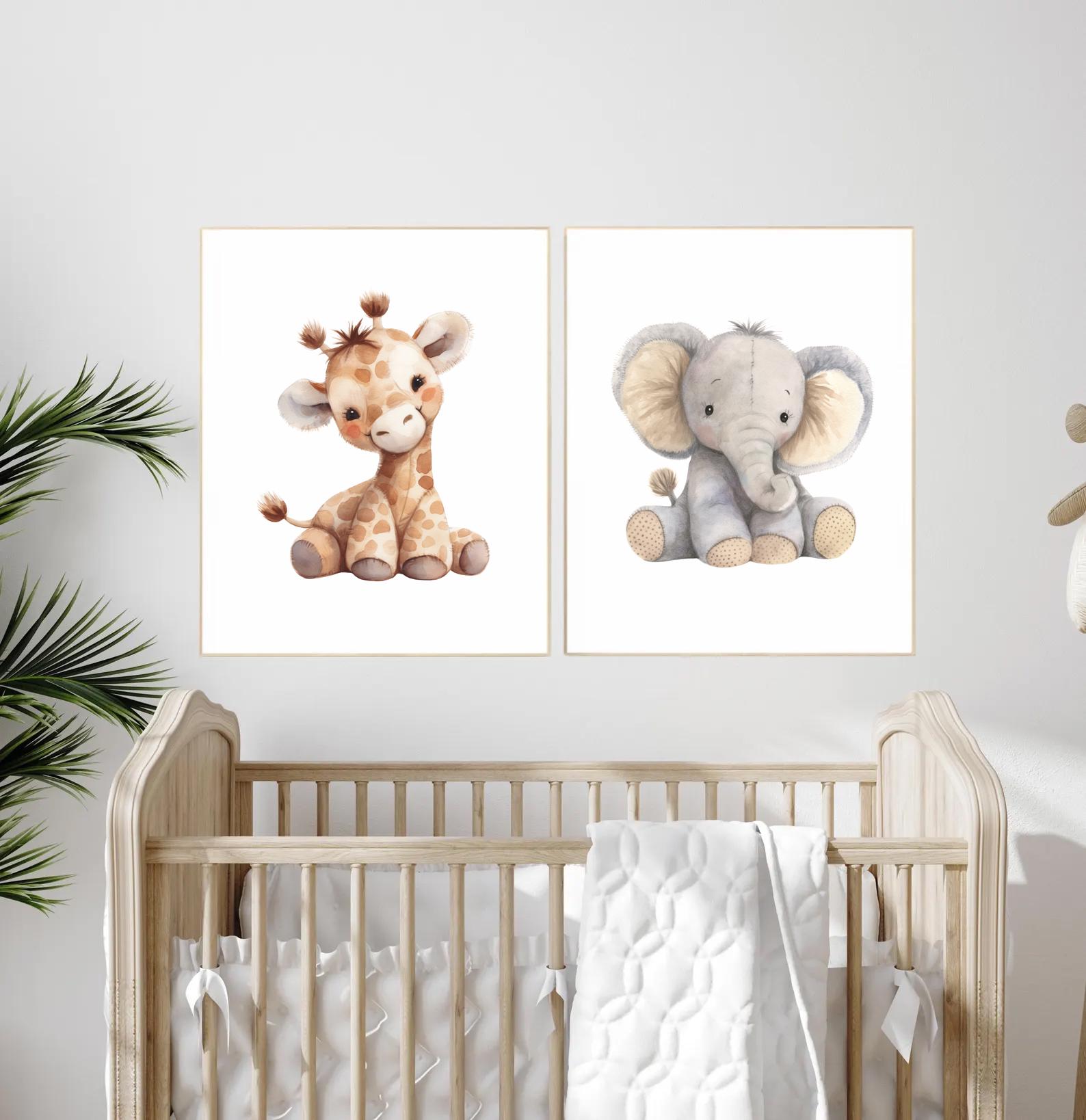 Safari Animal Nursery Prints: Plush, Elephant, Giraffe
