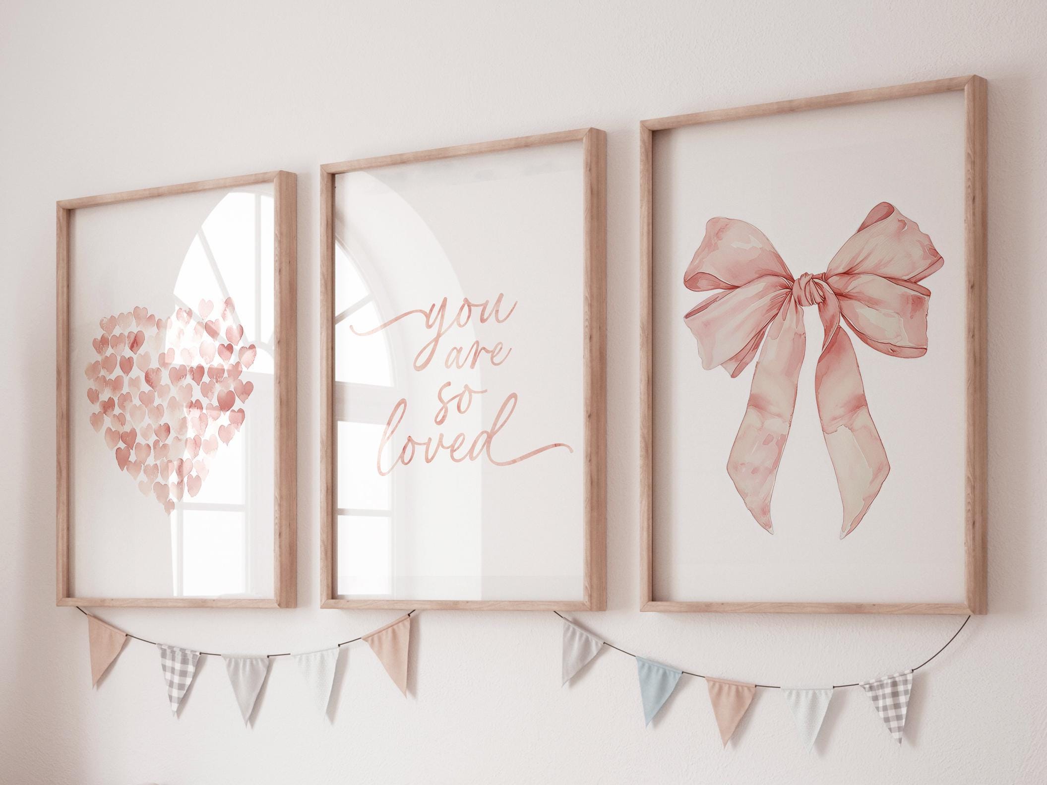 Girl Nursery Wall Art Set of 3, You Are So Loved Print, Peach Heart and Bow Prints, Pink Nursery Decor, Baby Girl Room Wall Art