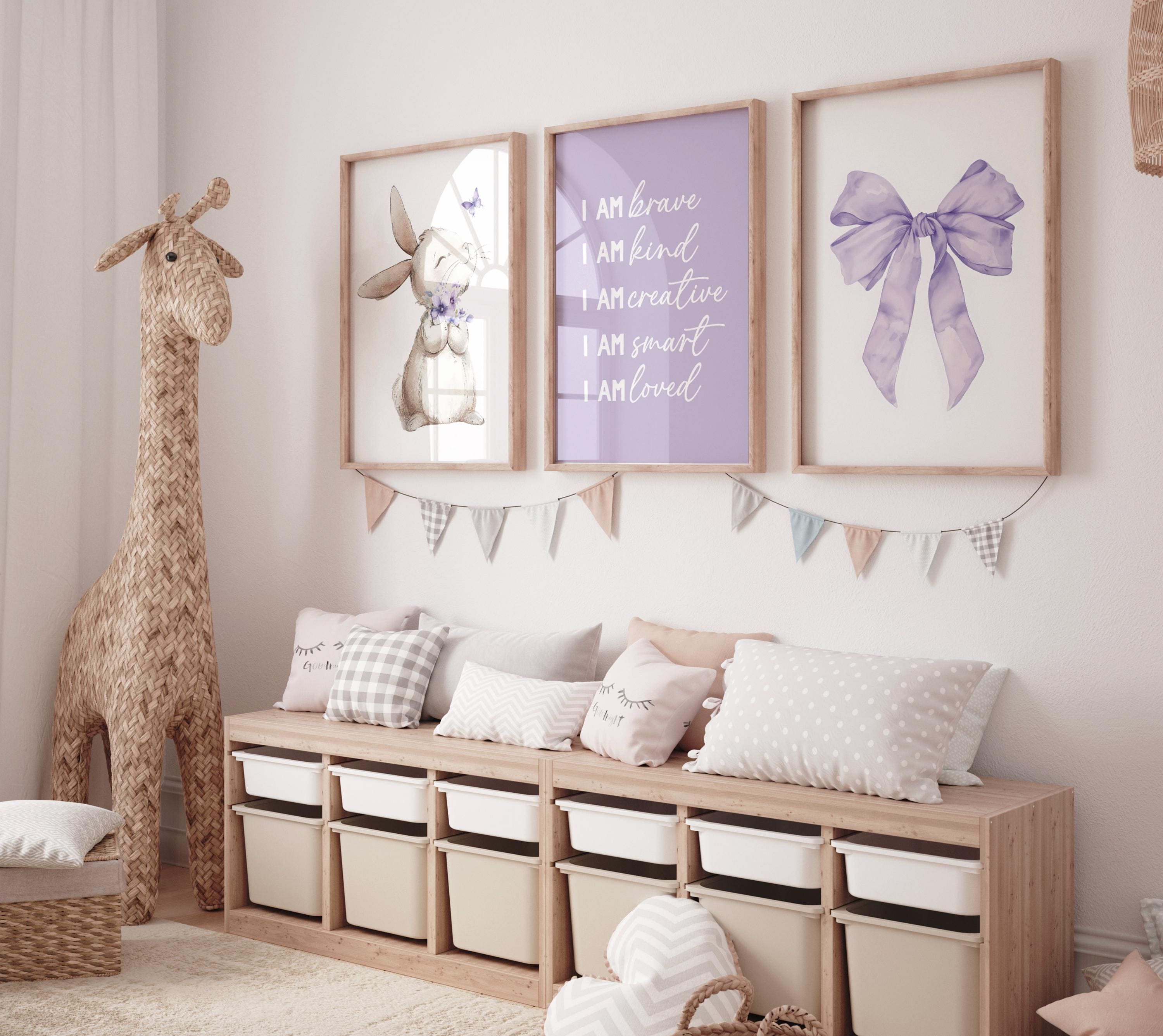 Purple Nursery Wall Art Set of 3, Bunny Print, Purple Bow, Girl Nursery Decor, I Am Brave Kind Creative Smart Loved