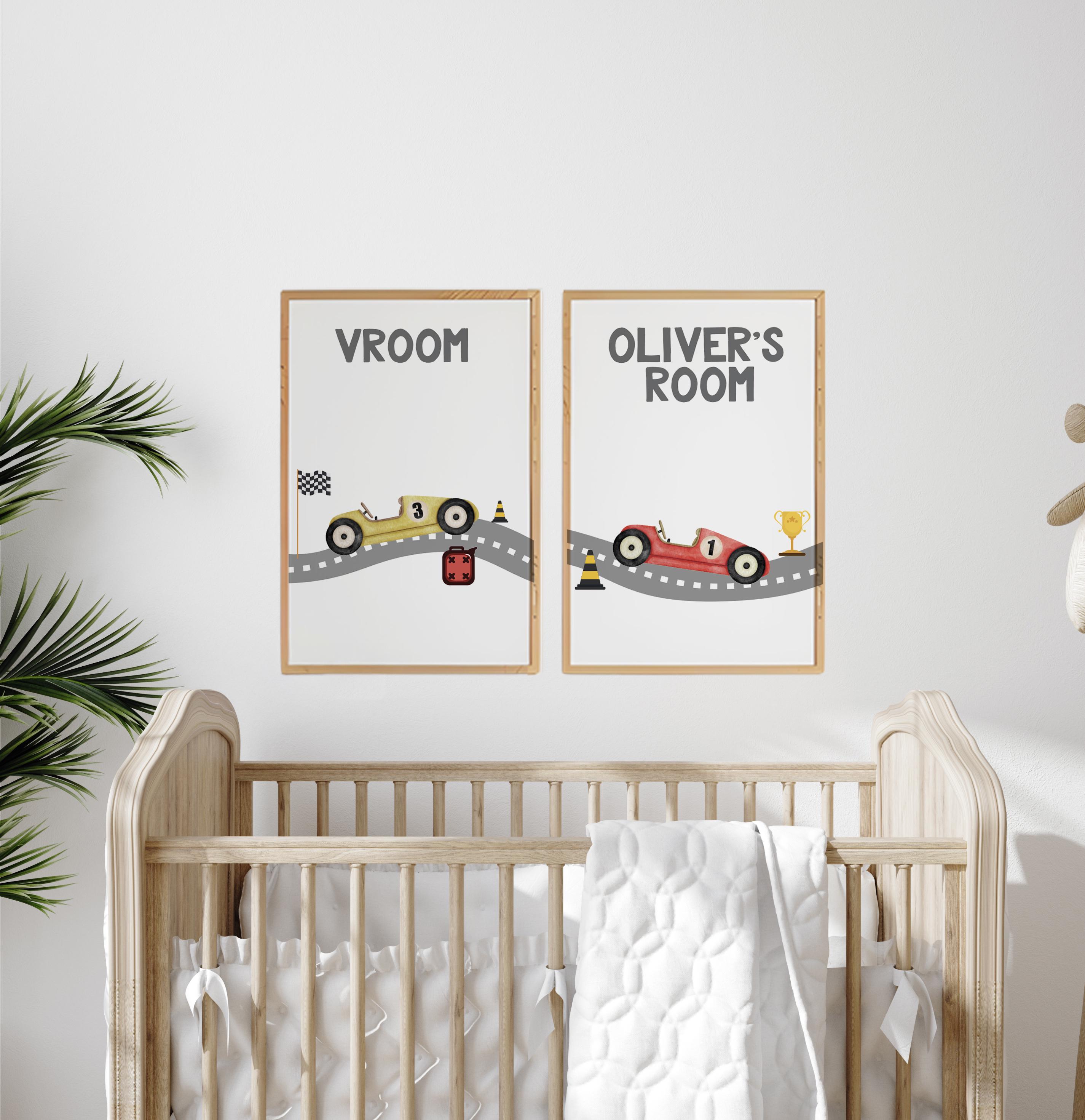 Race car wall art, personalized nursery, Race car boy room decor, Race car nursery, car nursery, Boys bedroom decor, playroom decor, toddler room