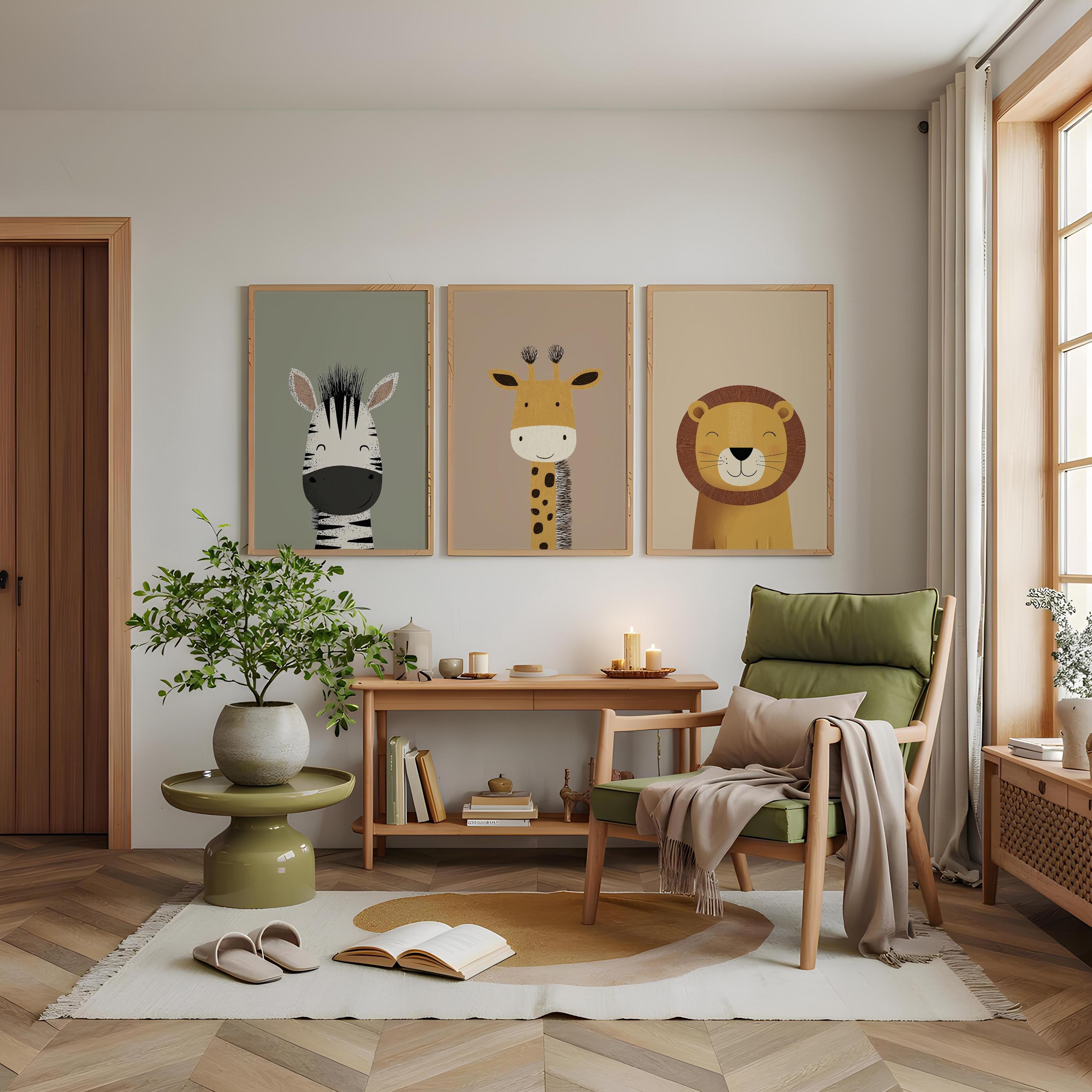 Safari Nursery Wall Prints, Boho Nursery Prints, jungle animals, Sage Green Nursery Art, animal Nursery Decor, animal prints, Set of 3 Prints
