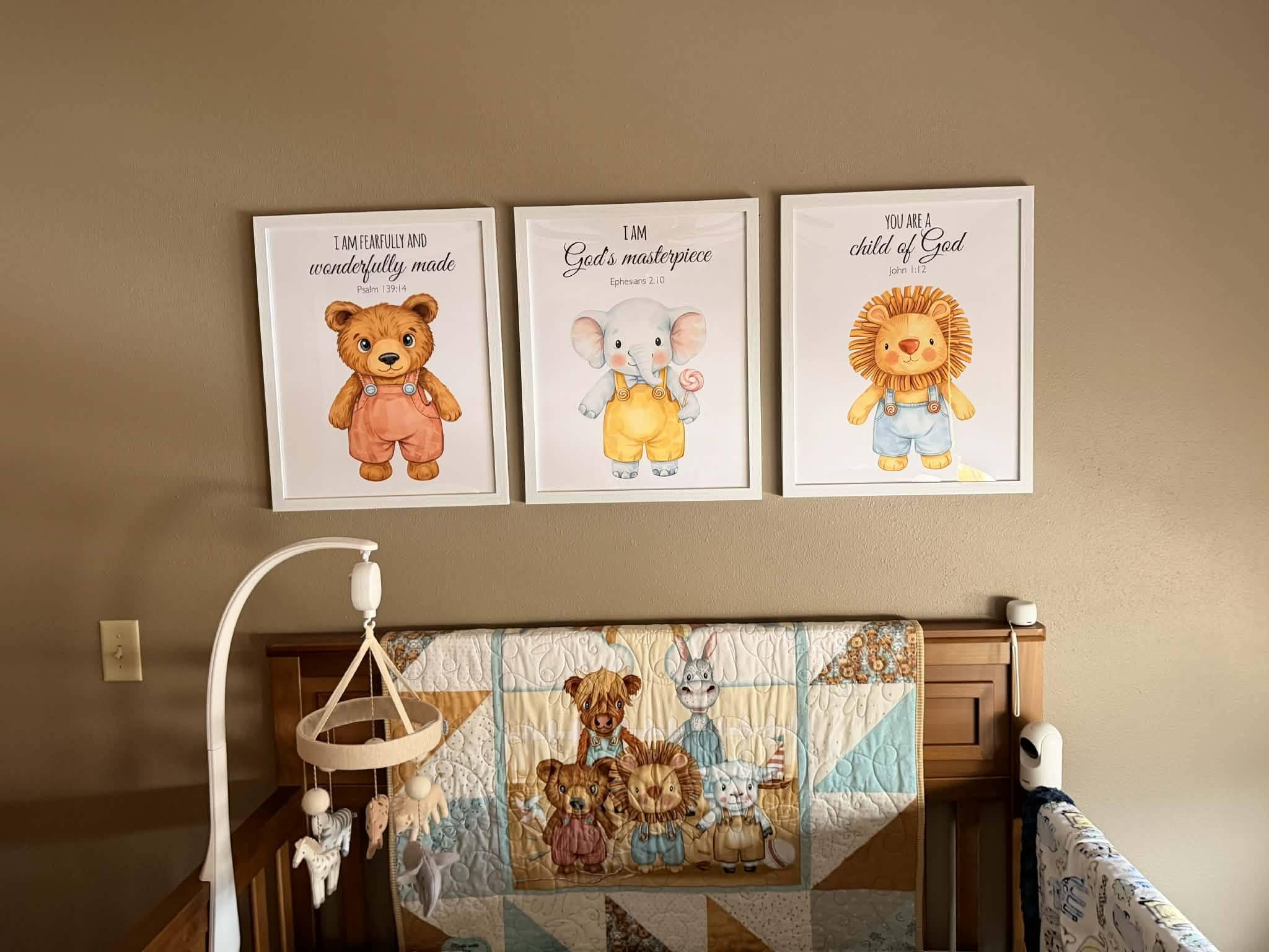 Ideal for nurseries, playrooms, or toddler bedrooms, this animal wall art set pairs beautifully with natural wood frames and neutral décor. A lovely gift for baby showers, new parents, or nursery makeovers.