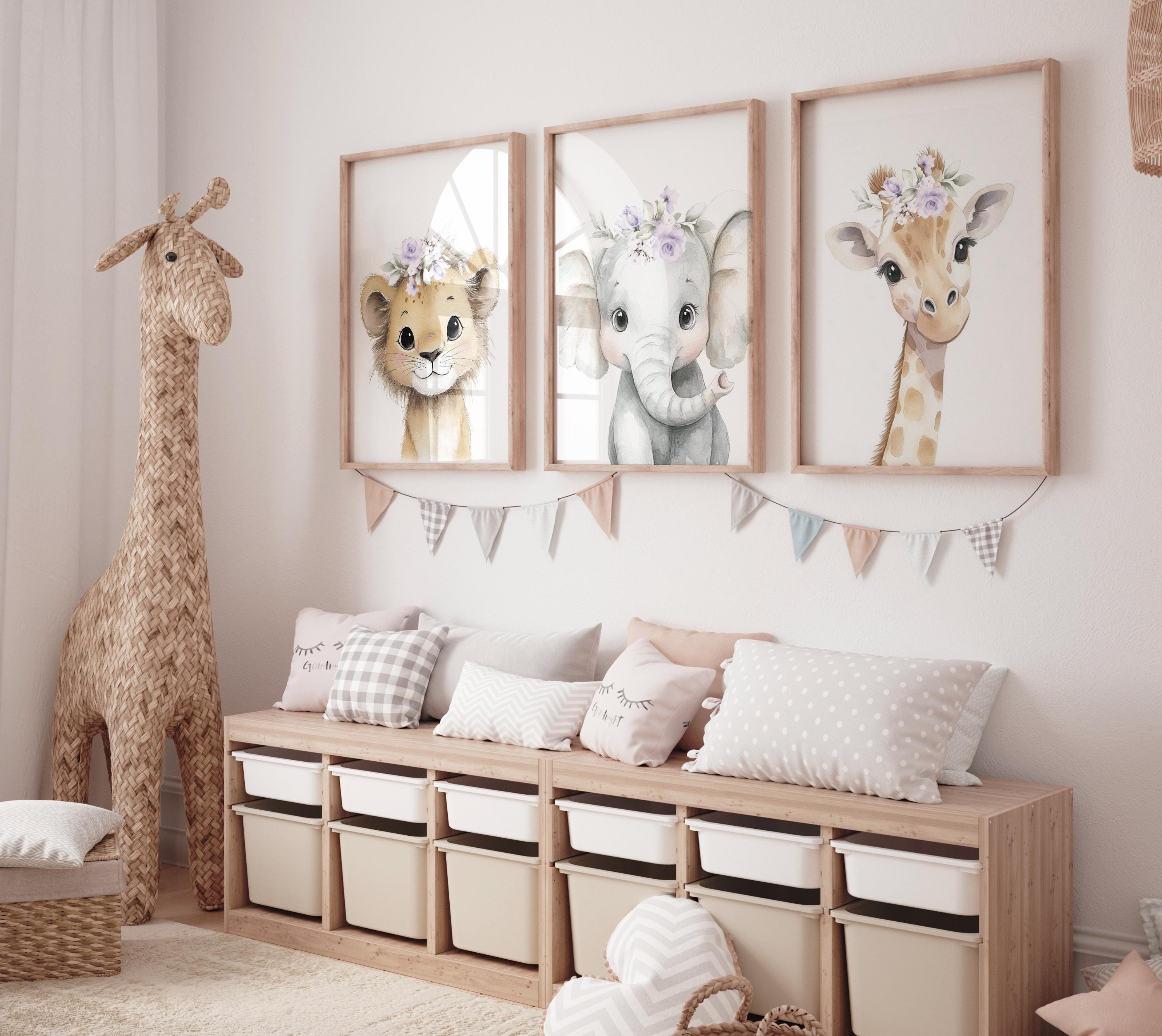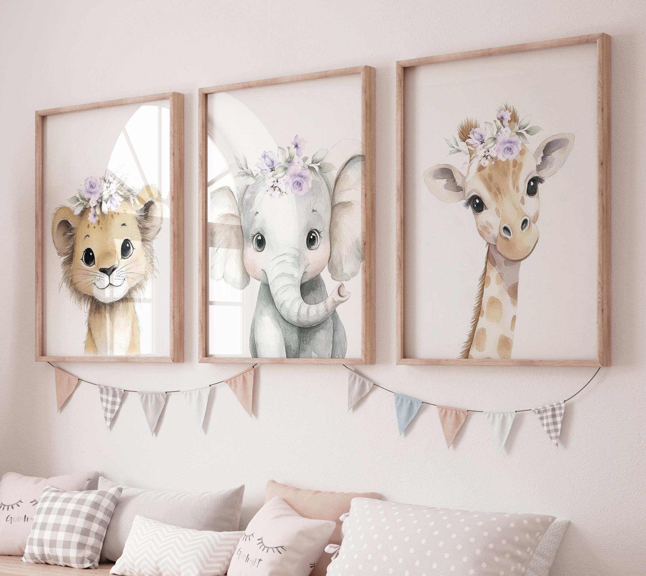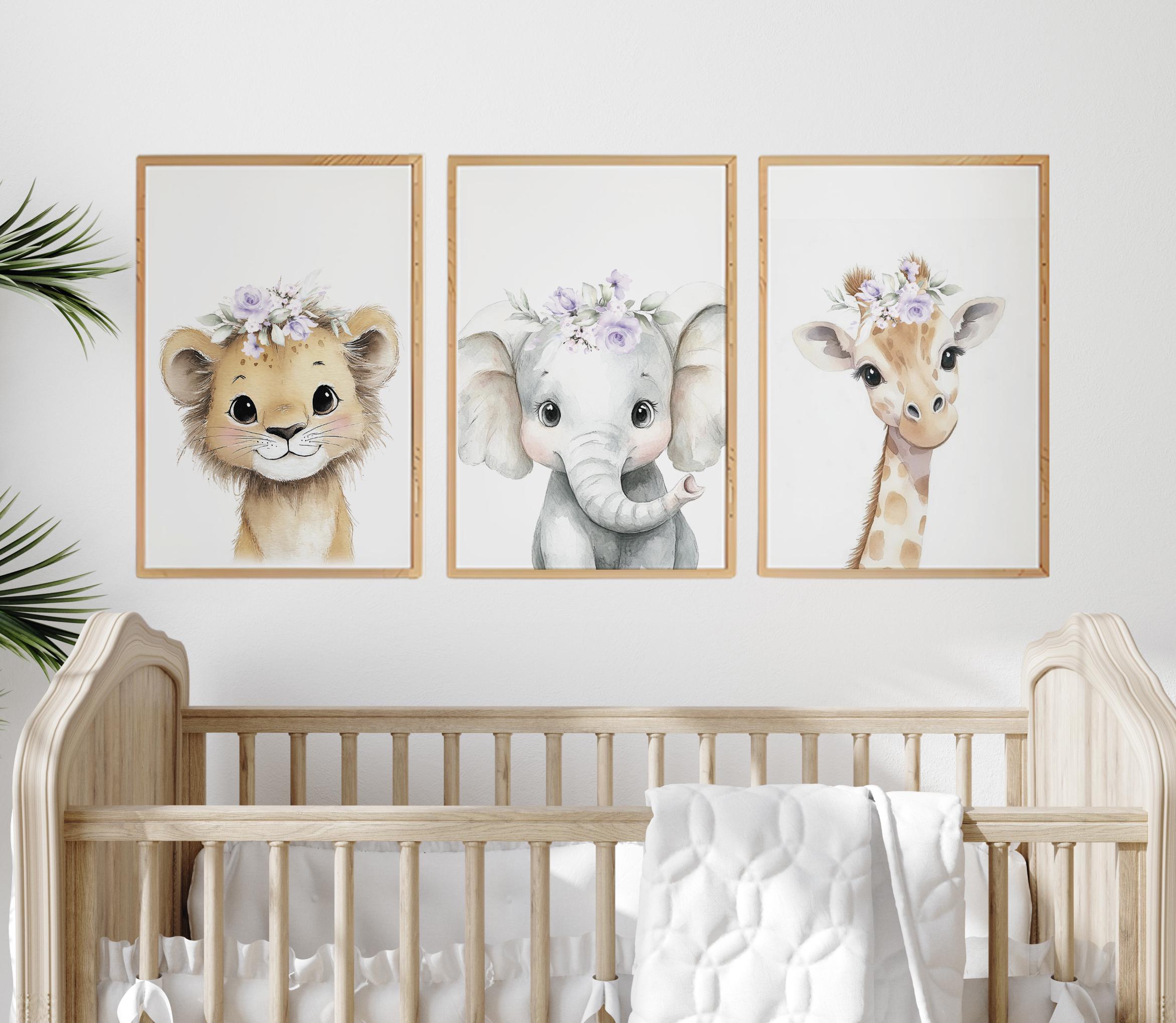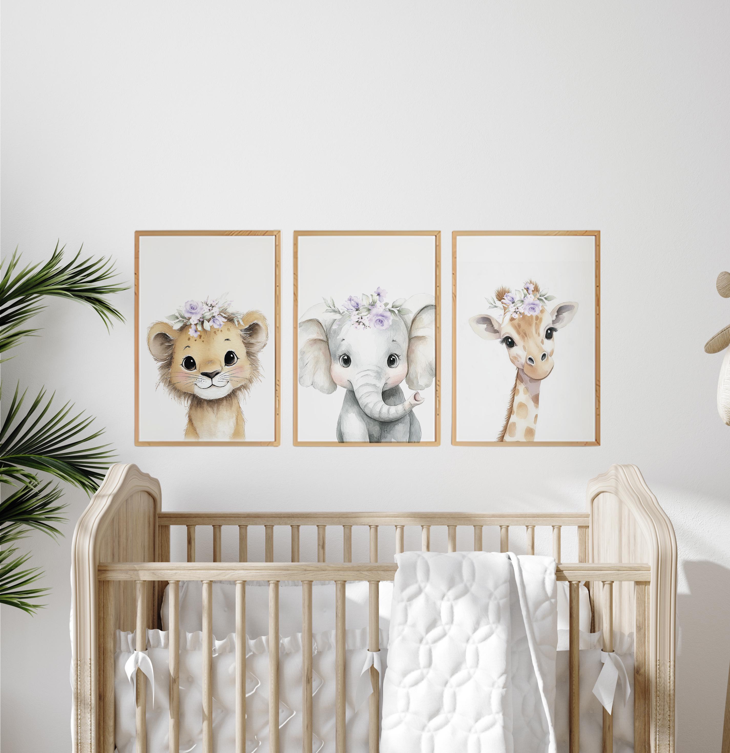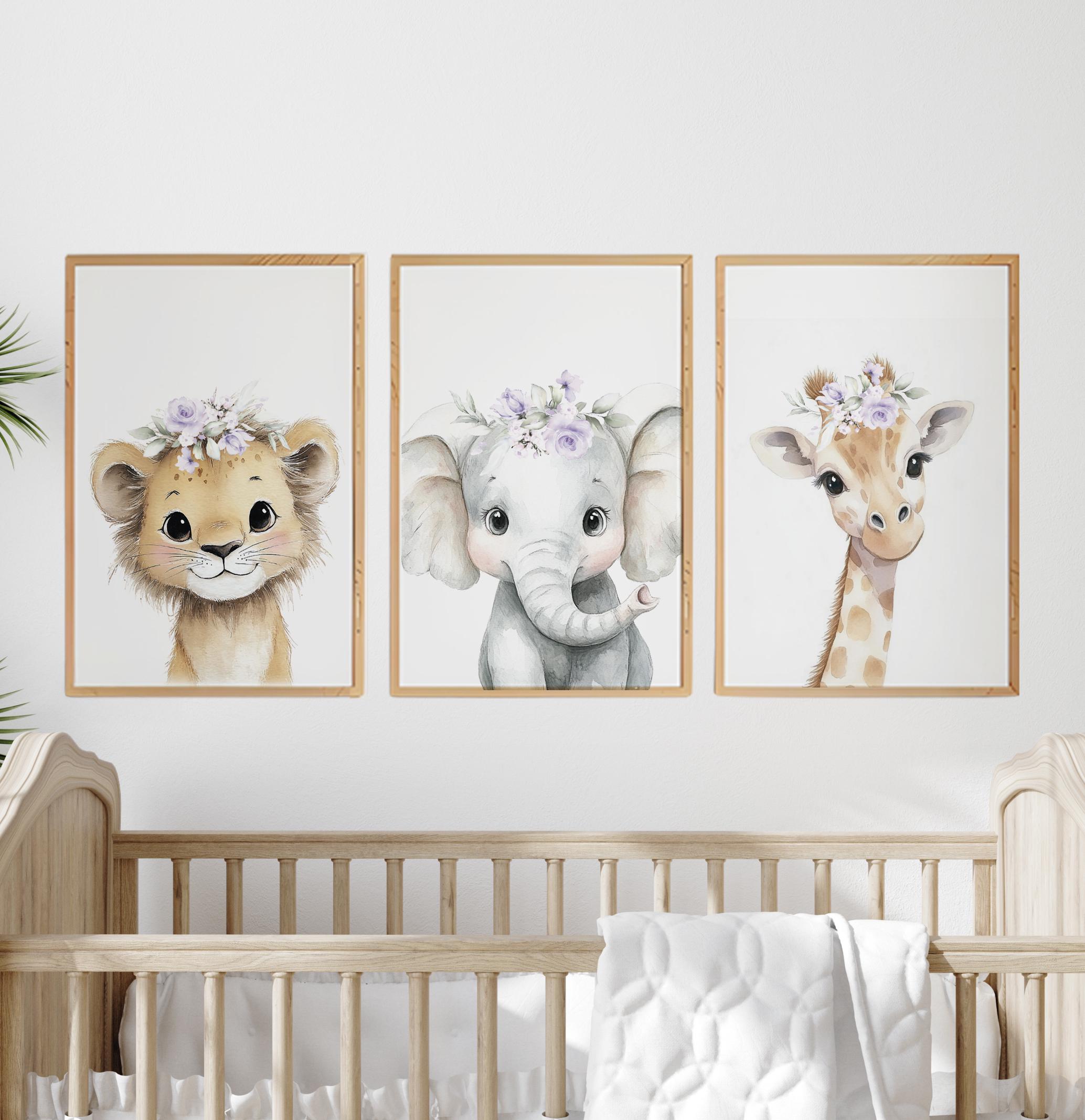 Safari Animals, girl nursery, Animals Prints, Woodland Nursery Decor, Safari Nursery Wall Art, floral animal prints, purple nursery