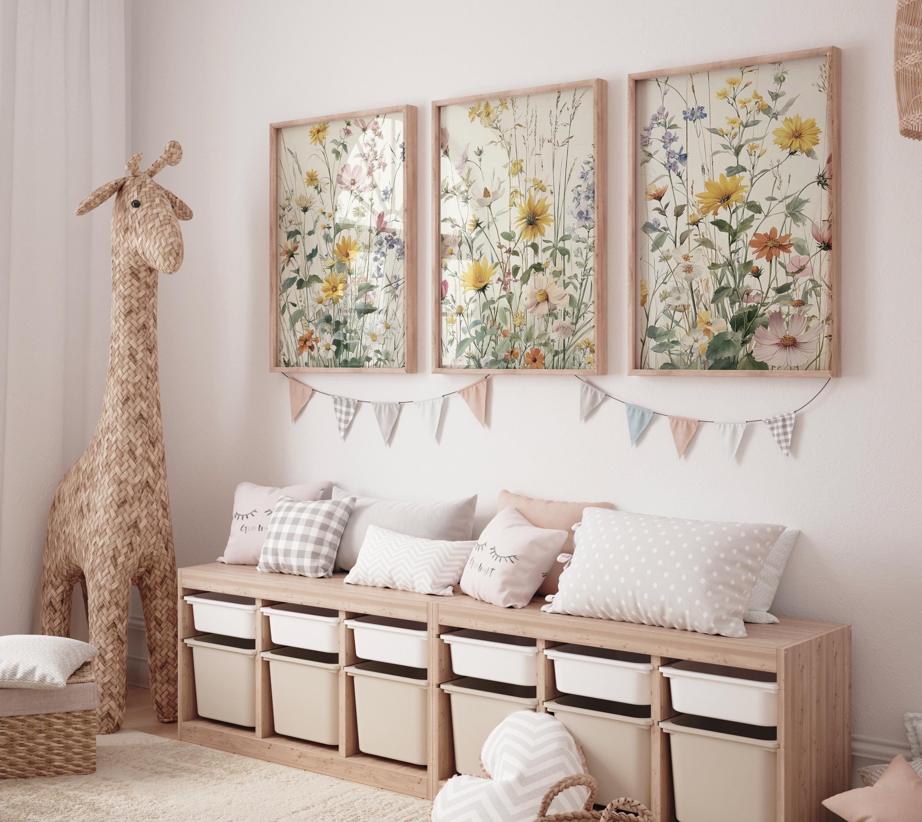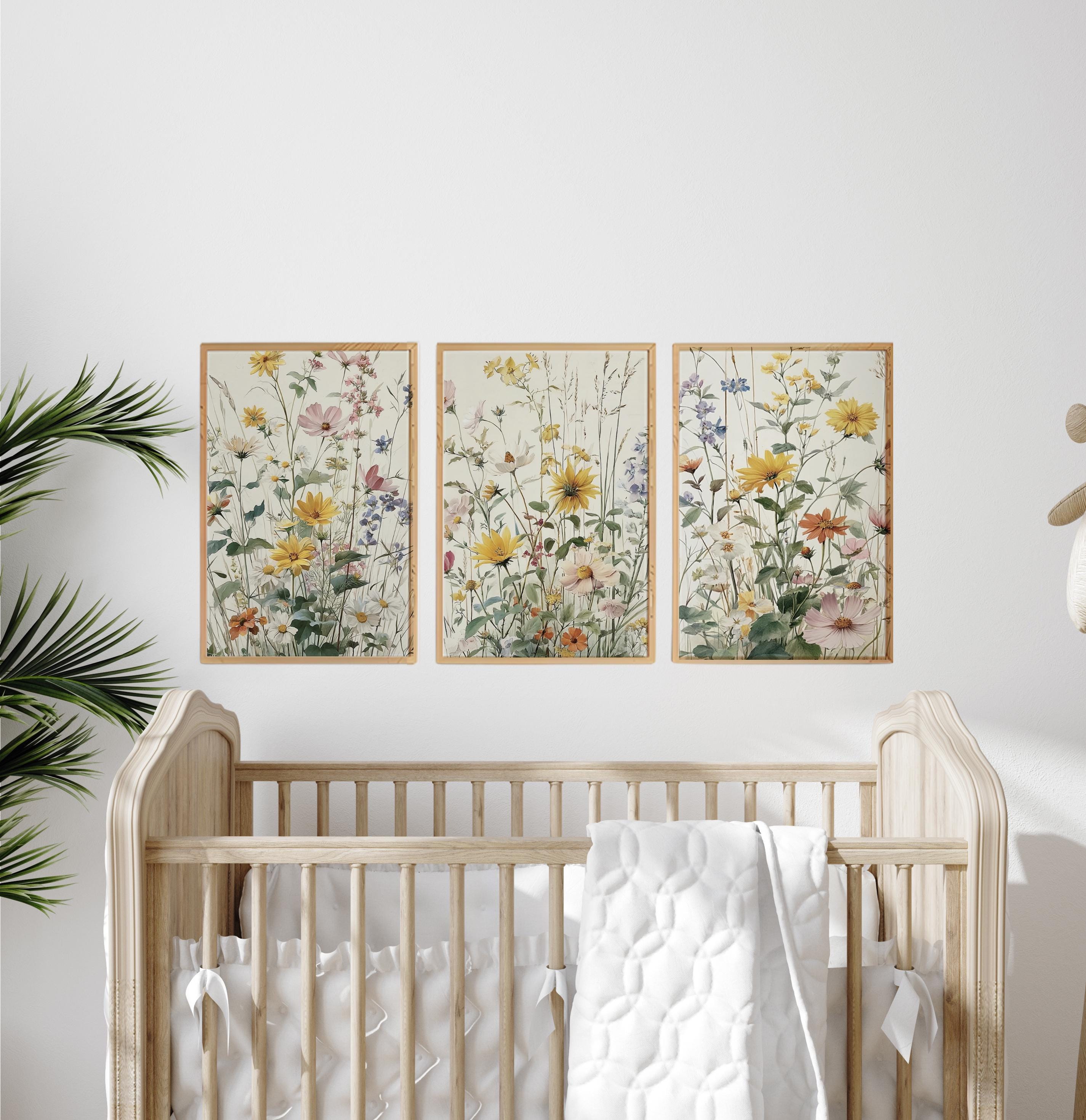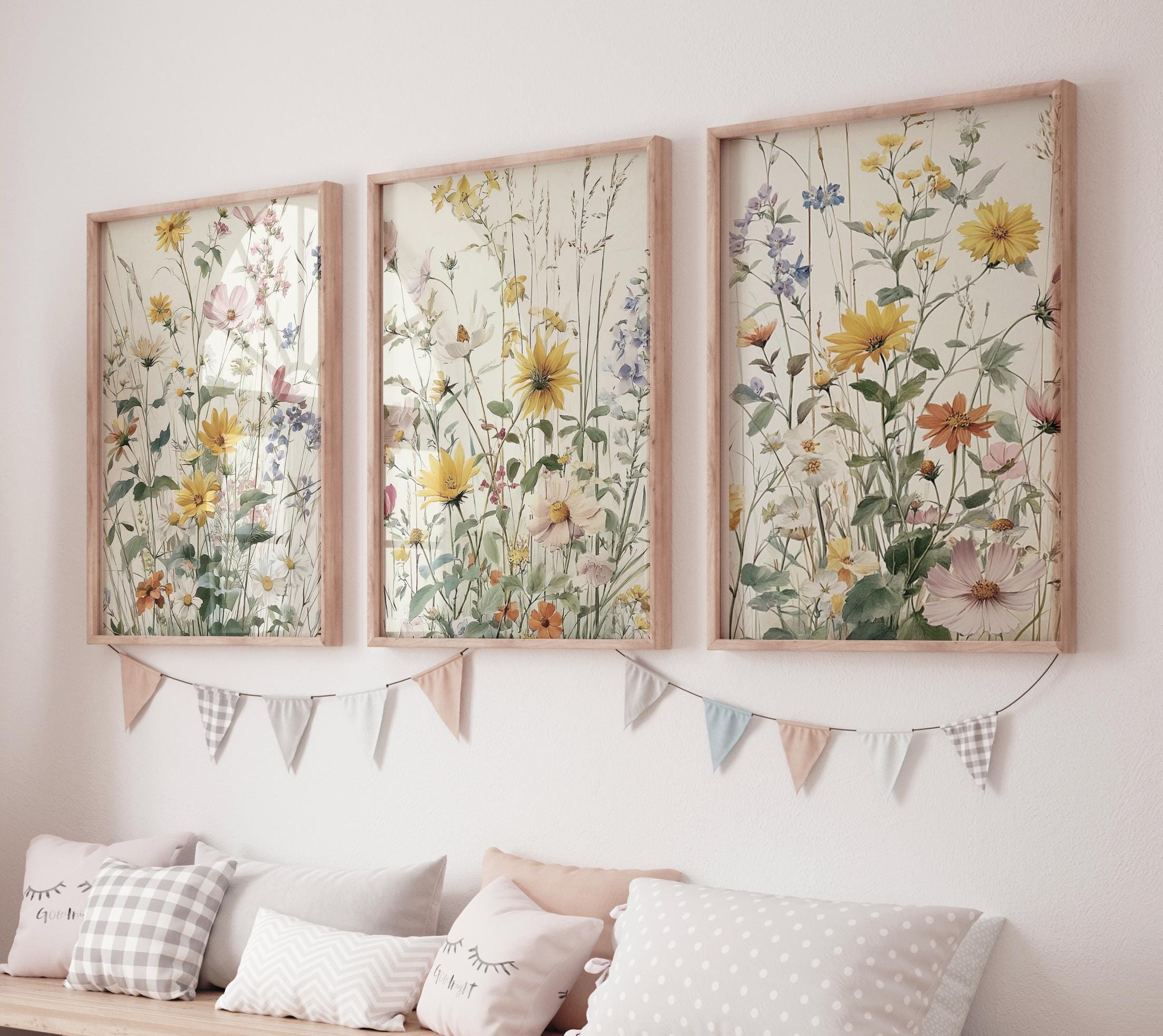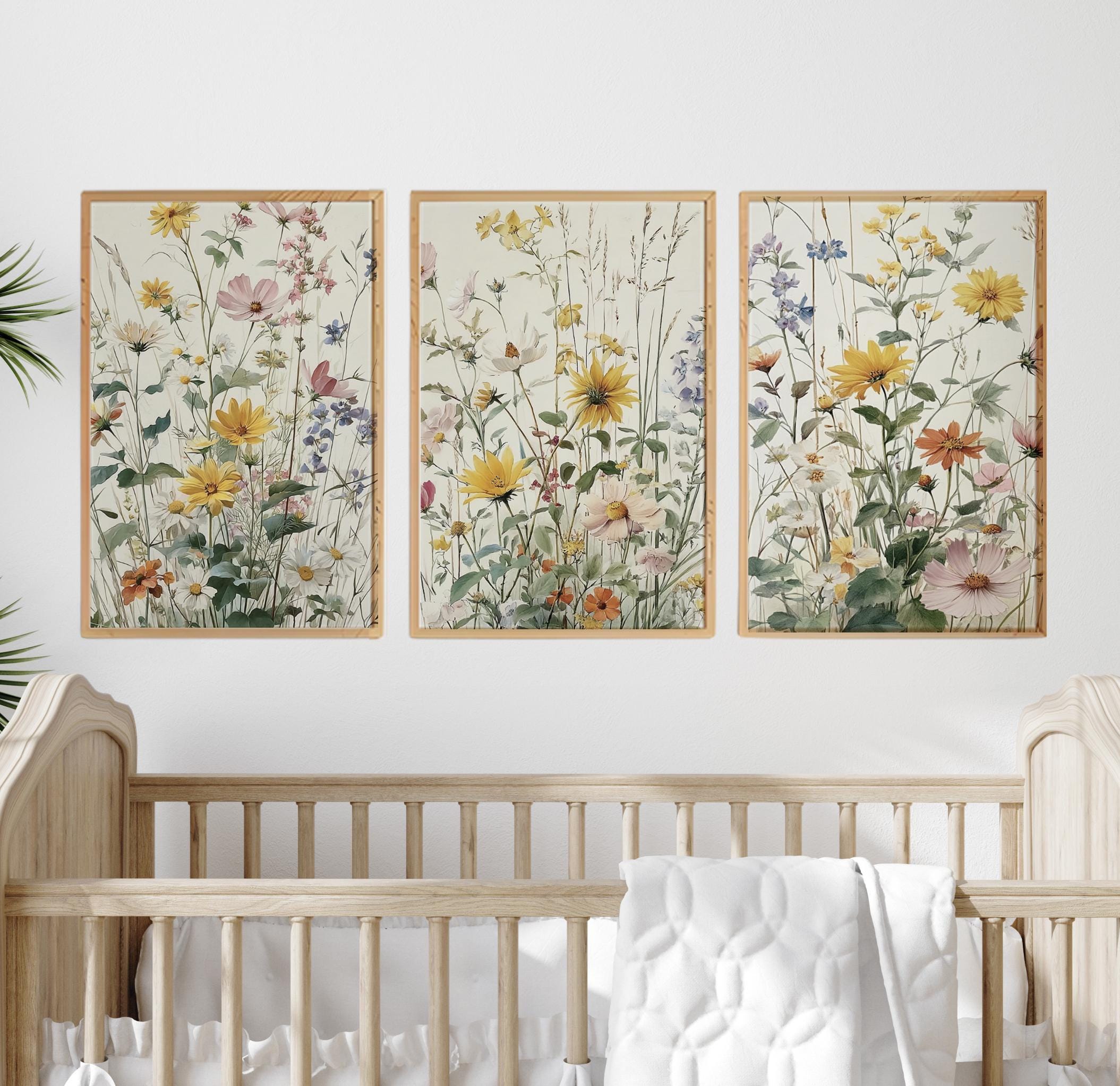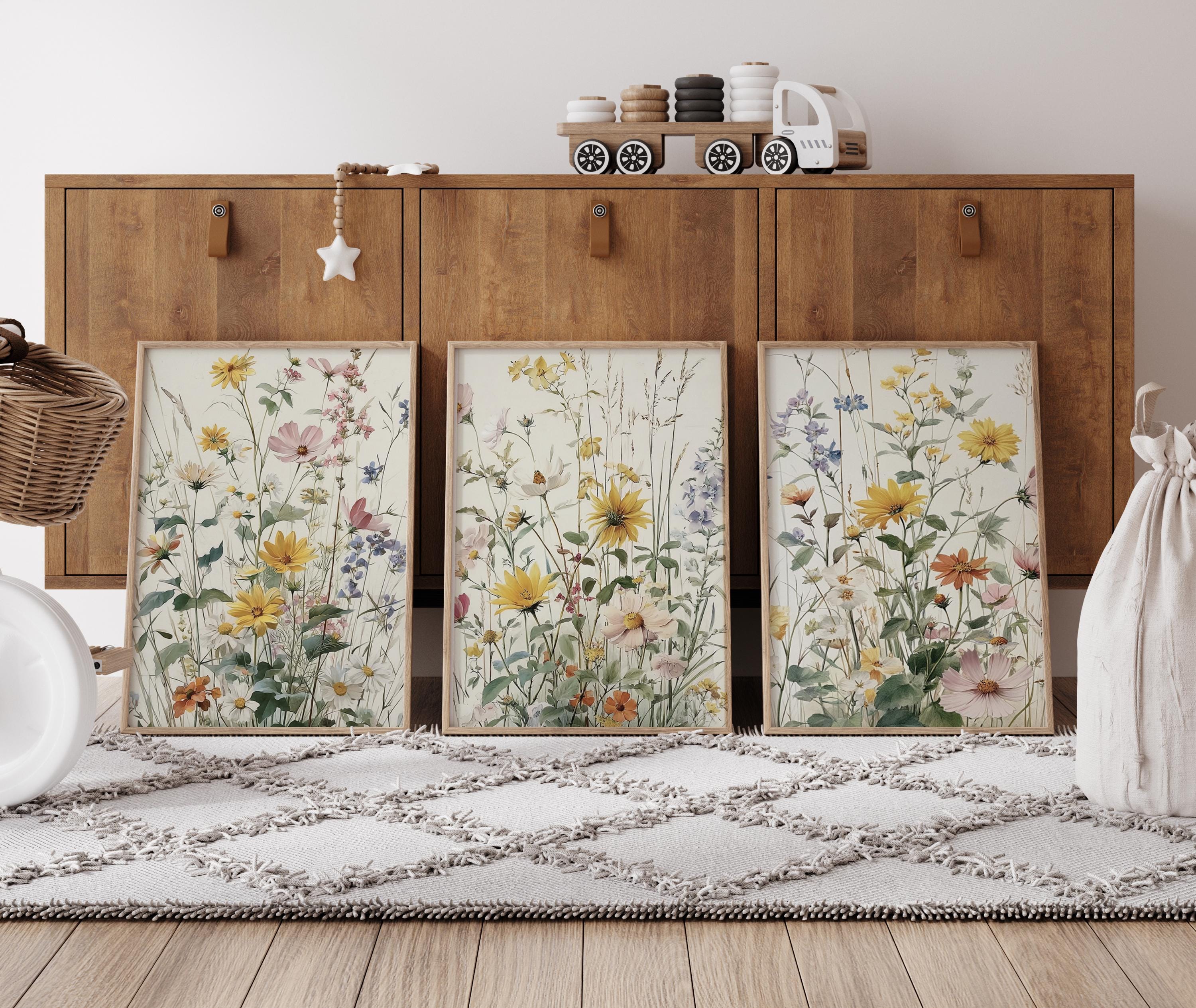 Wildflower Nursery Wall Art Set of 3, Botanical Floral Prints, Girl Room Decor, Cottagecore Nursery Art, Floral Home Decor