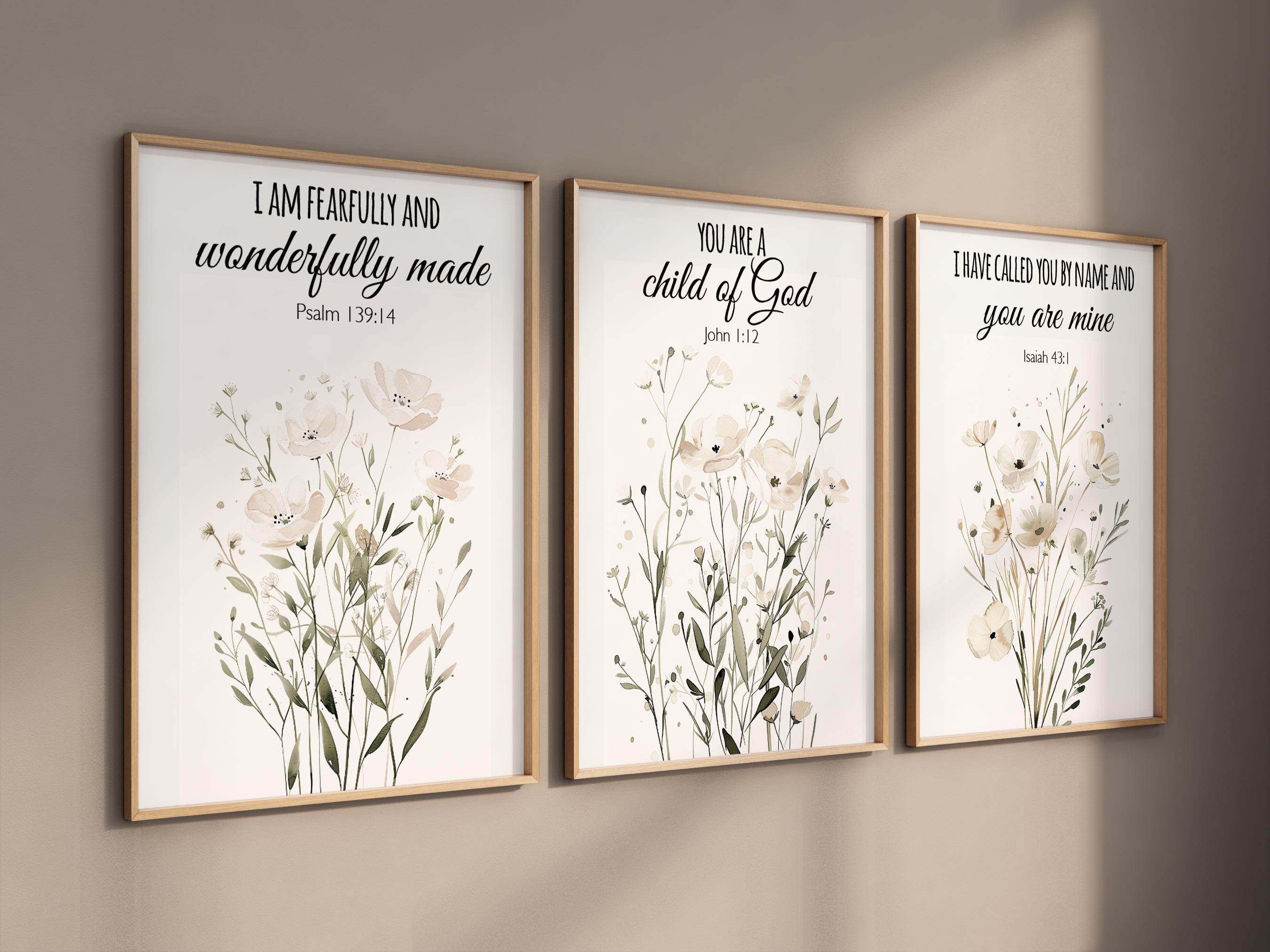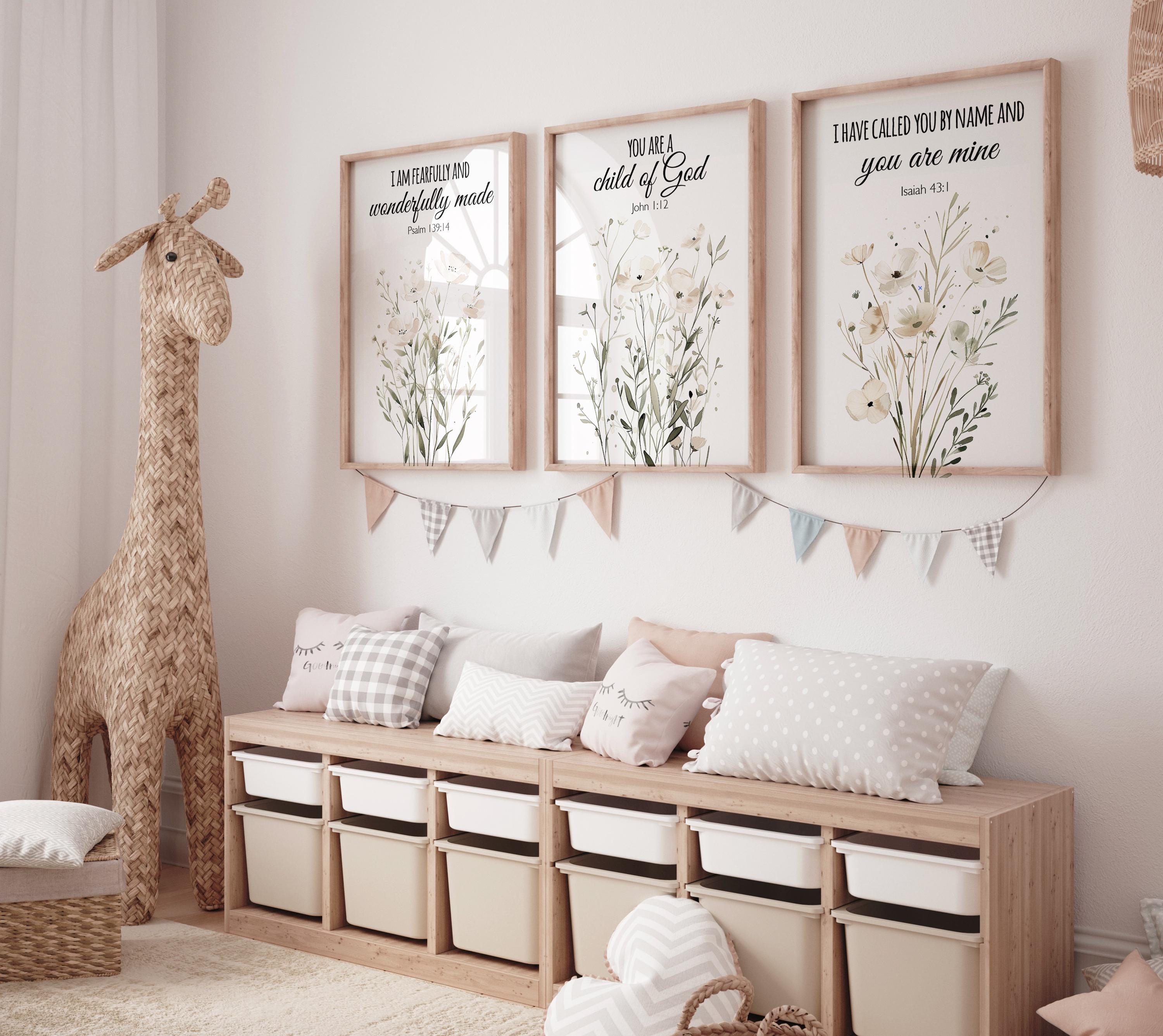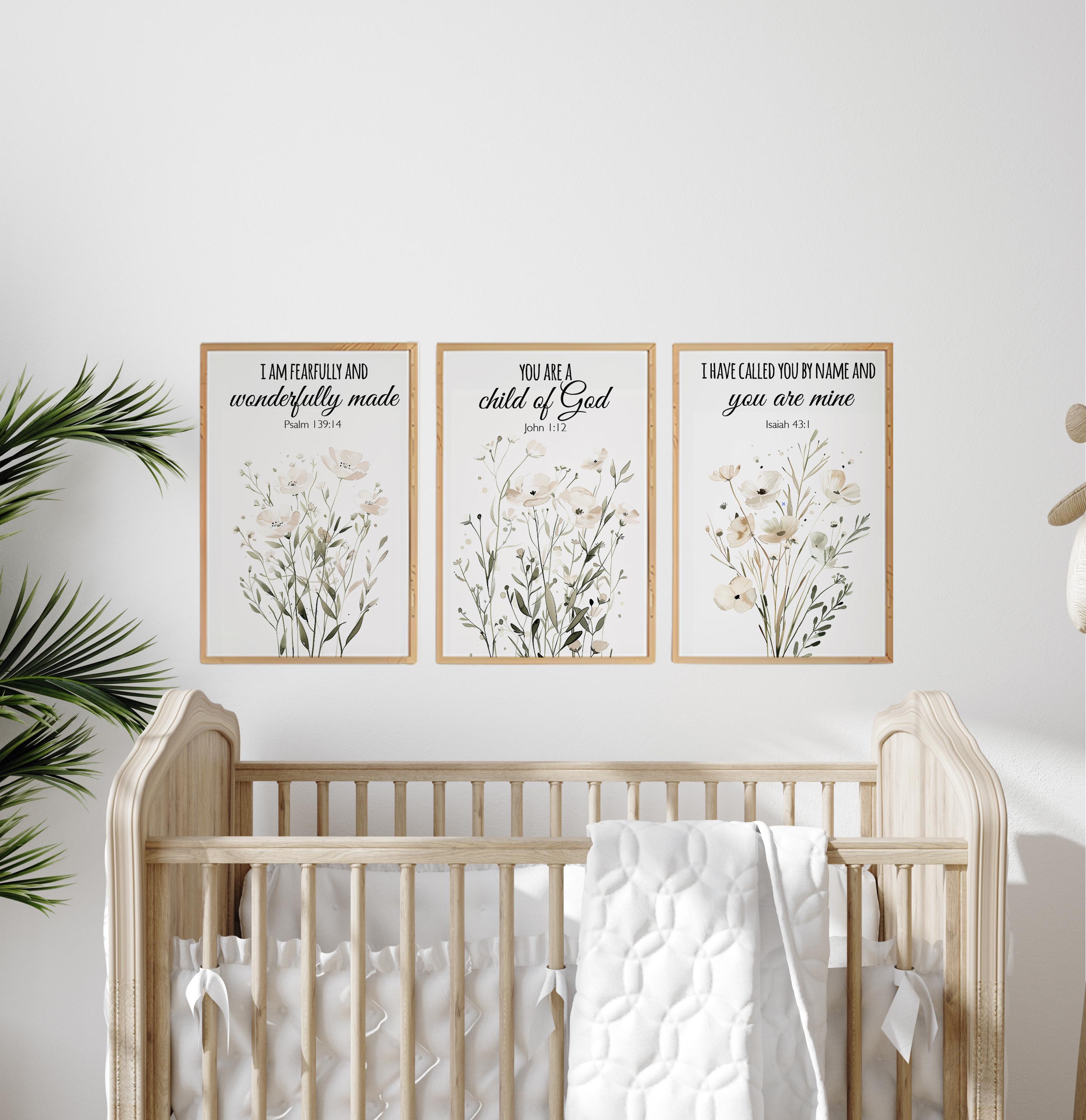 Christian Nursery Wall Art Set of 3, Bible Verse Nursery Prints, Scripture Baby Room Decor, Neutral Floral Nursery Wall Art