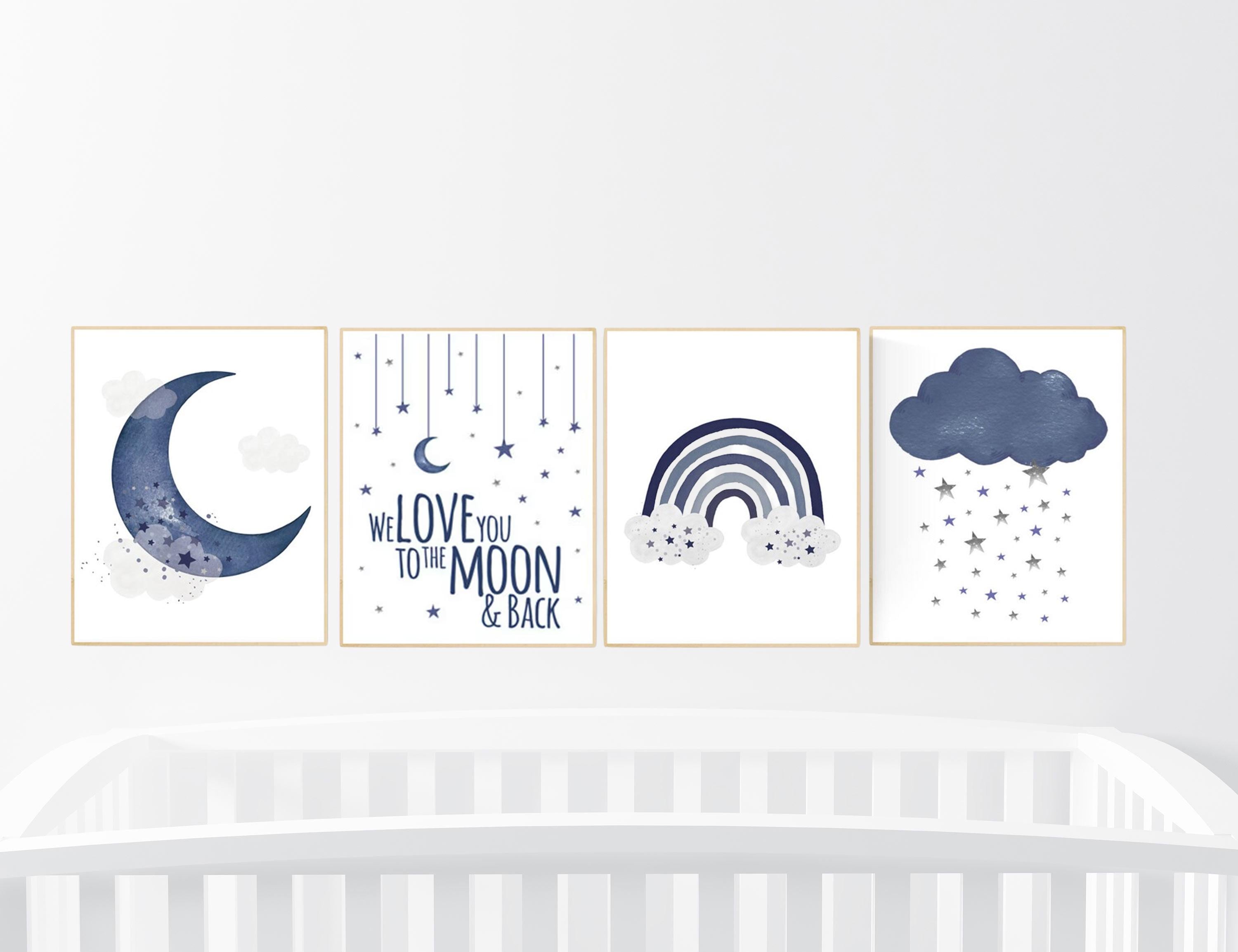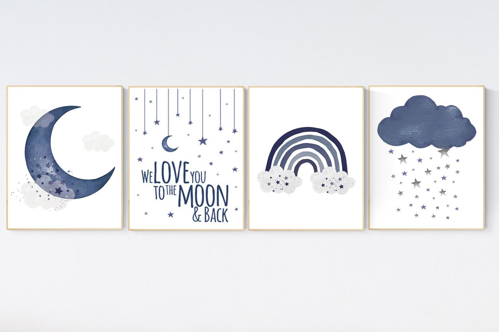 Navy nursery decor, boy nursery decor, rainbow, moon and stars, navy blue nursery, boy nursery wall decor, navy nursery, boys room wall art