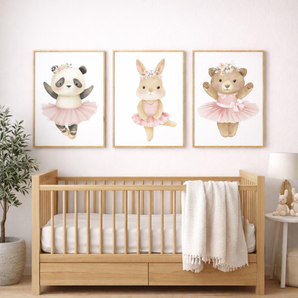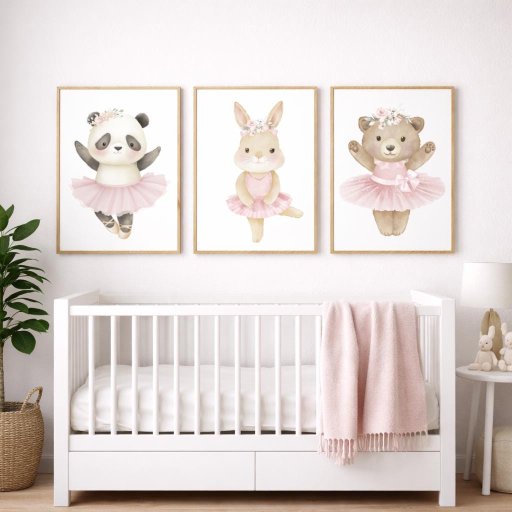 Ballerina animals, baby room decor girl, panda nursery, bunny nursery, bear nursery, nursery prints girl, ballet prints, ballet animals