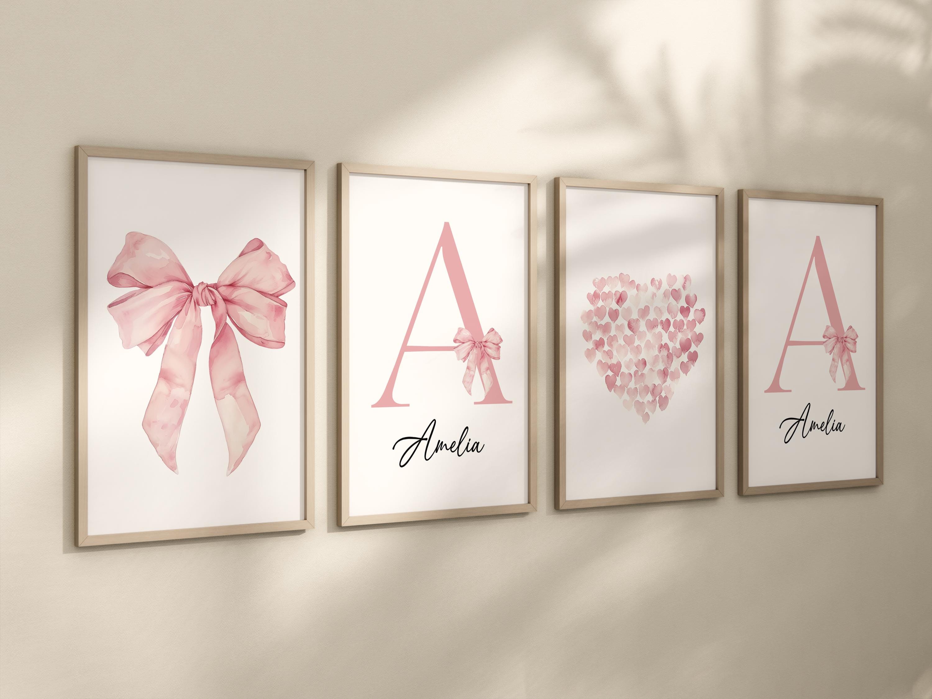Bow print wall art, Bow nursery print, pink Bow nursery wall art, bow nursery art, bow nursery decor, bow print wall art, name print