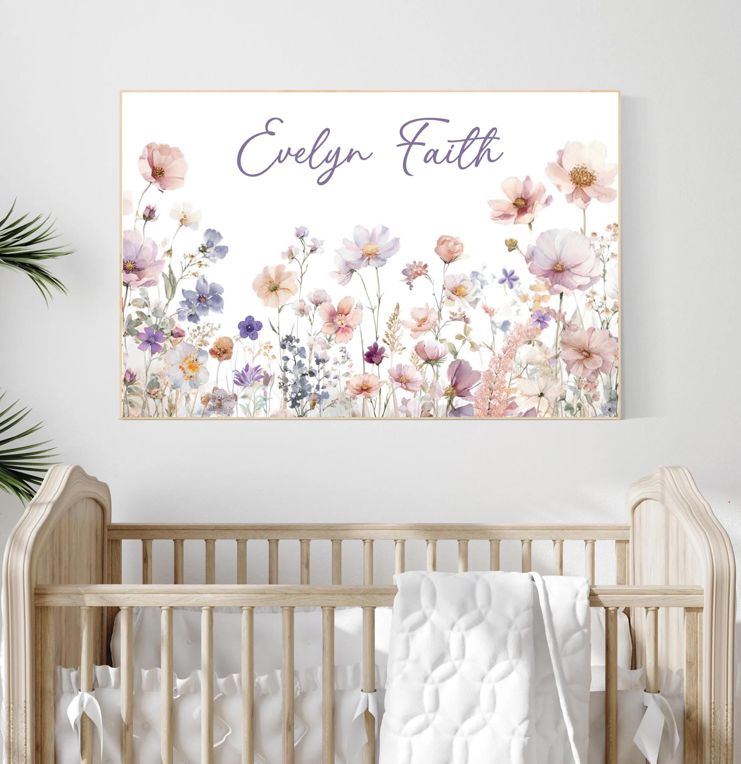 This custom name print features watercolor wildflowers in soft tones—perfect for a baby girl’s nursery or kids' room. Personalize it with your child’s name to create a unique and meaningful gift that adds charm and color to any space.