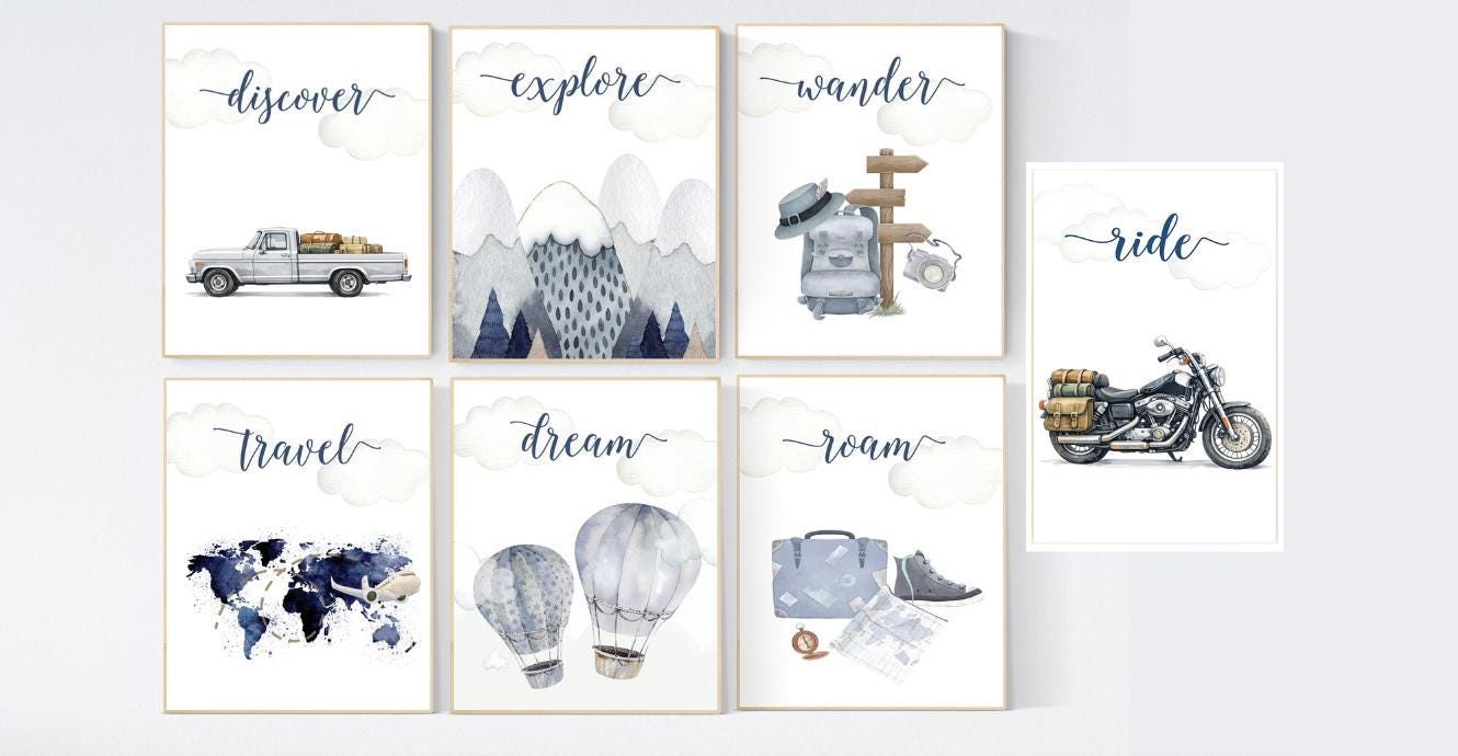Travel nursery print, Explore nursery wall art, Baby boy nursery, Adventure Set of 6 prints, Camping Prints, Adventure Nursery Decor