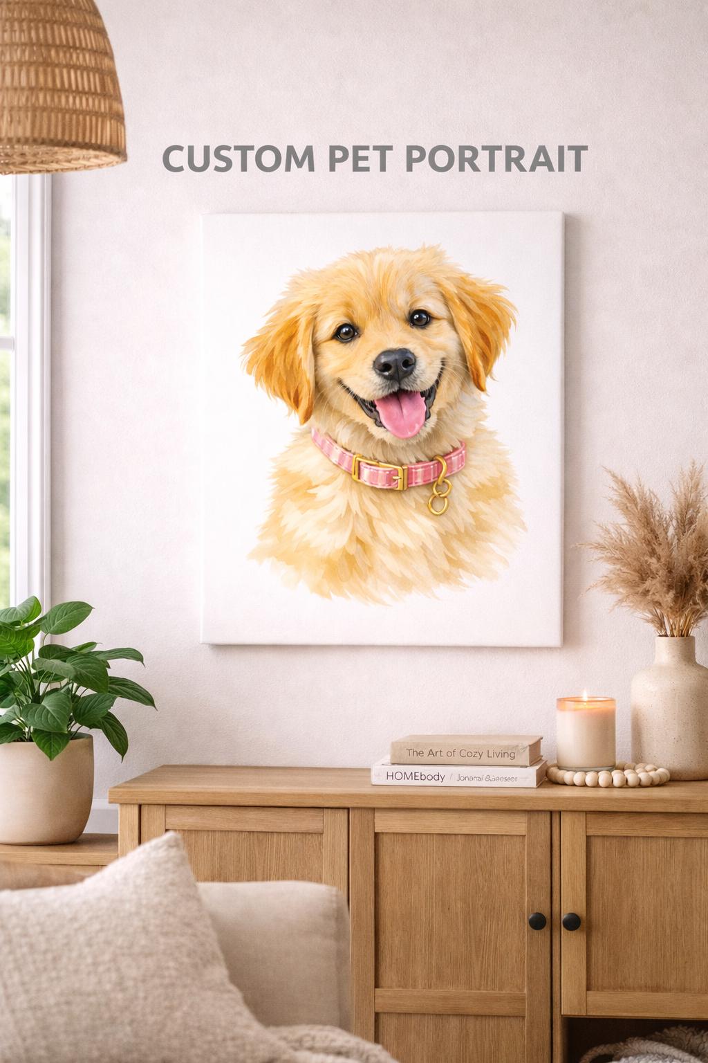 This personalized dog portrait is created from your pet’s photo in a soft, painterly style that looks warm, charming, and timeless. It makes a thoughtful gift for dog lovers and a sweet way to celebrate your own furry friend.