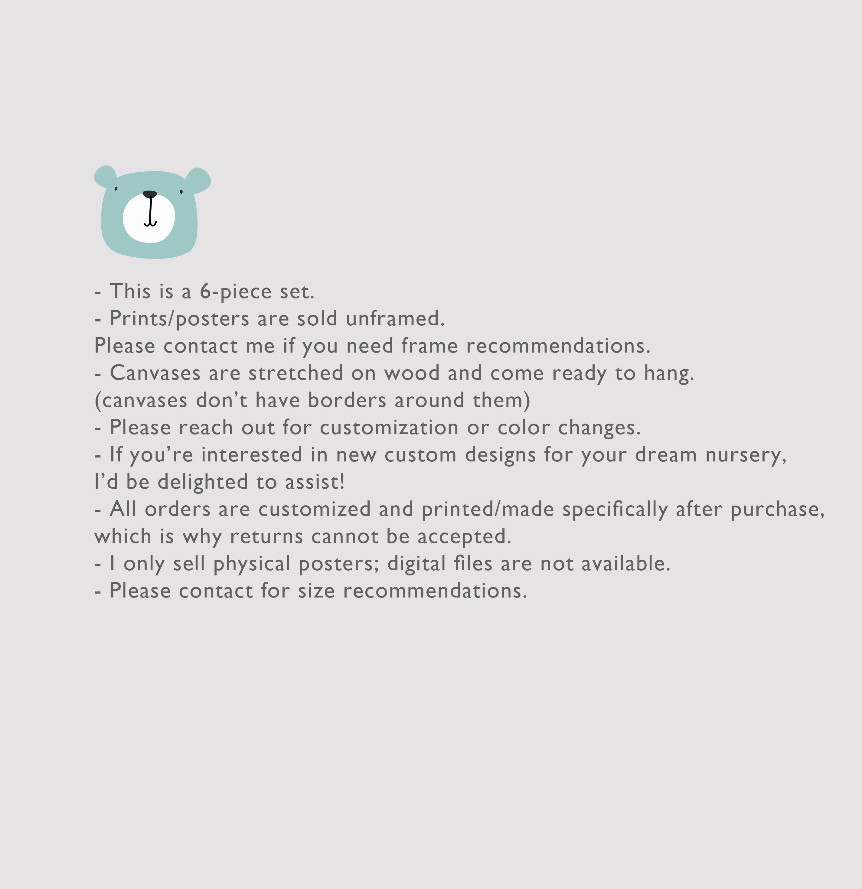 - We can customize any nursery wall art or nursery print to match your nursery decor. Just send us the details of your baby's or kid's room, and we'll create matching designs and colors.
