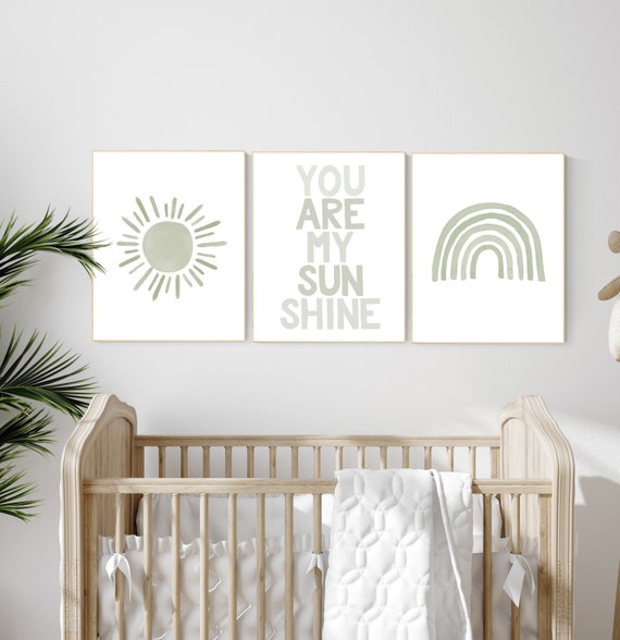 Sage Green Nursery Prints: Rainbow, Sun, Sunshine Art